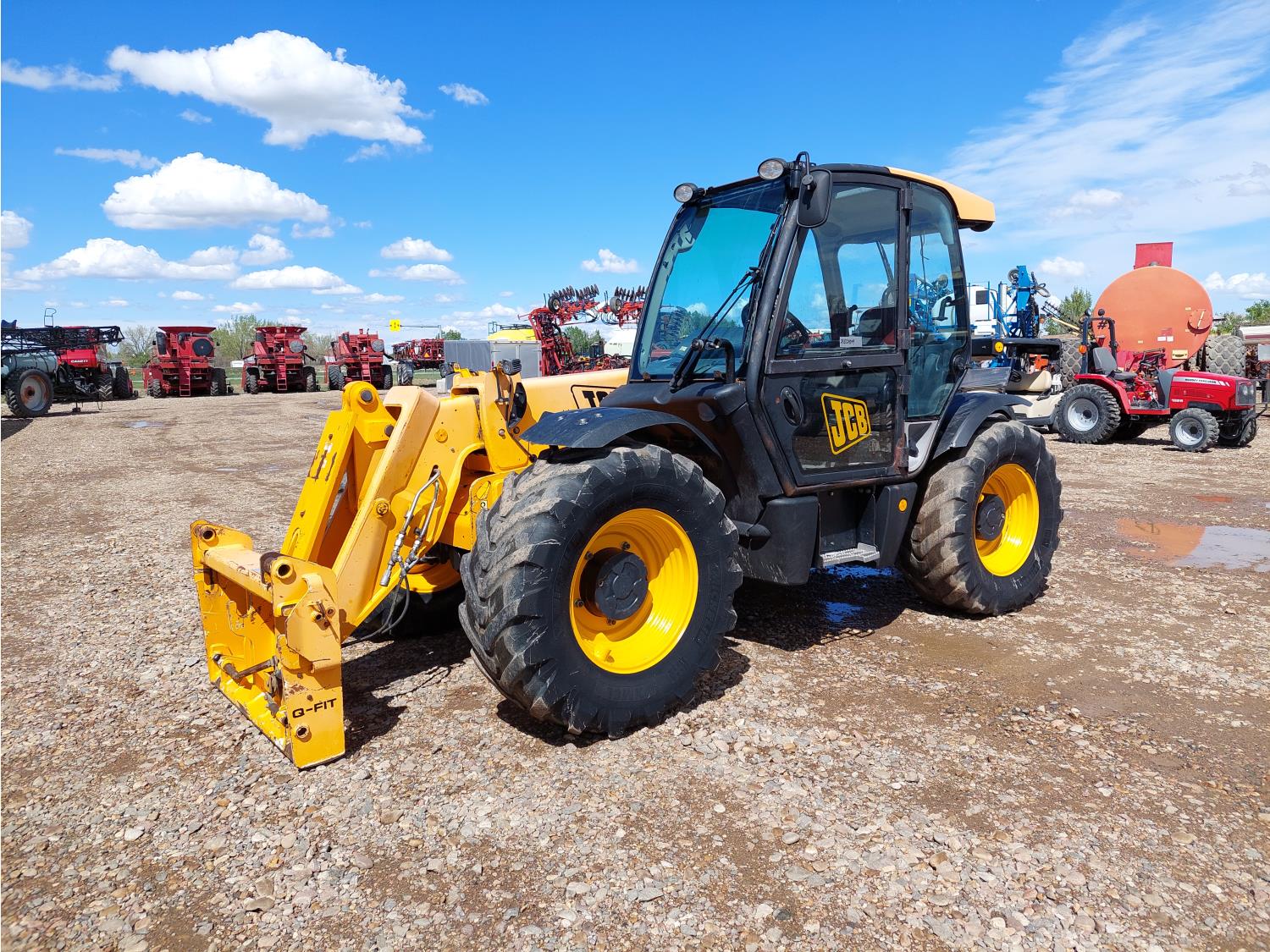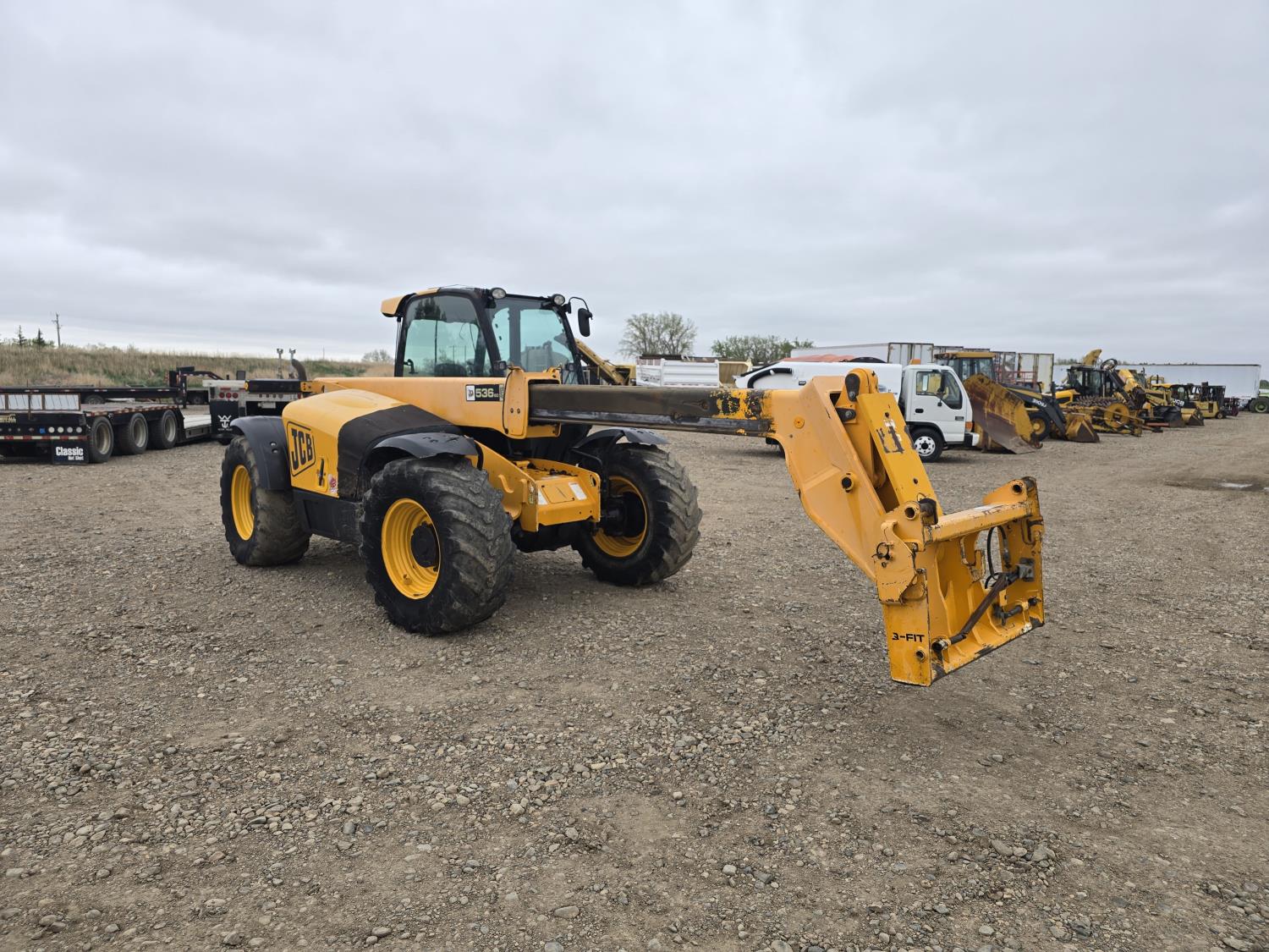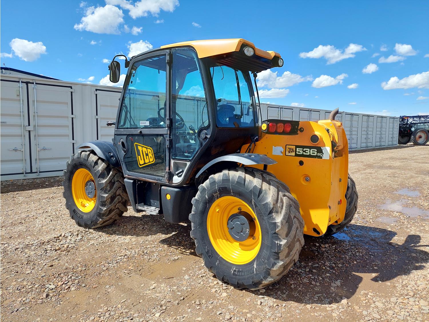 20 ft 5 inch reach, Enclosed cab, A/C, air ride seat, 4 speed powershift transmission, 3 way steering, 130HP diesel engine, hydraulic Q/C coupler, 1 front auxiliary hydraulics, 460/70R24 tires