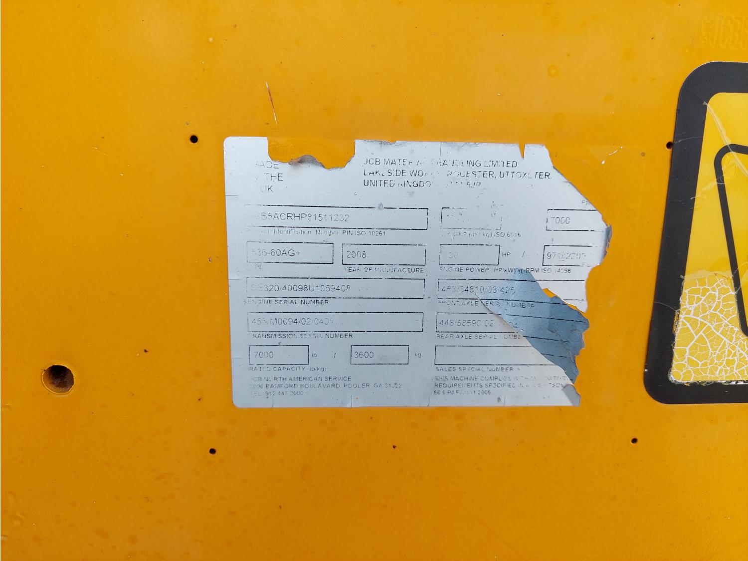 327 2008 JCB 536-60AG+ 7000lb 4X4 Telehandler