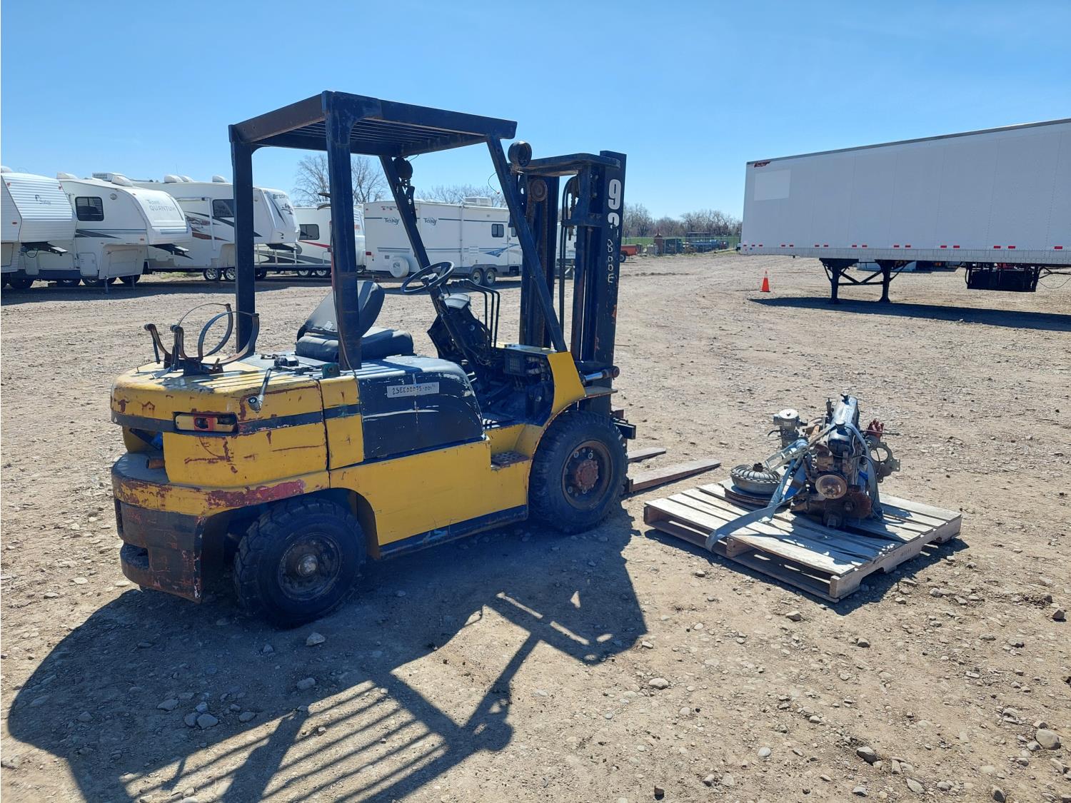 4 cylinder LPG engine, 2 stage mast, side shift, 42 inch forks, 7.00-12 front tires, 6.00-9 rear tires