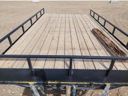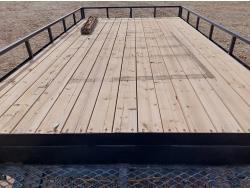 84 inch wide deck, wood deck, electric brakes, spring suspension, rub rails, 29.5 inch ramp, 2 inch ball hitch, 8-14.5 tires