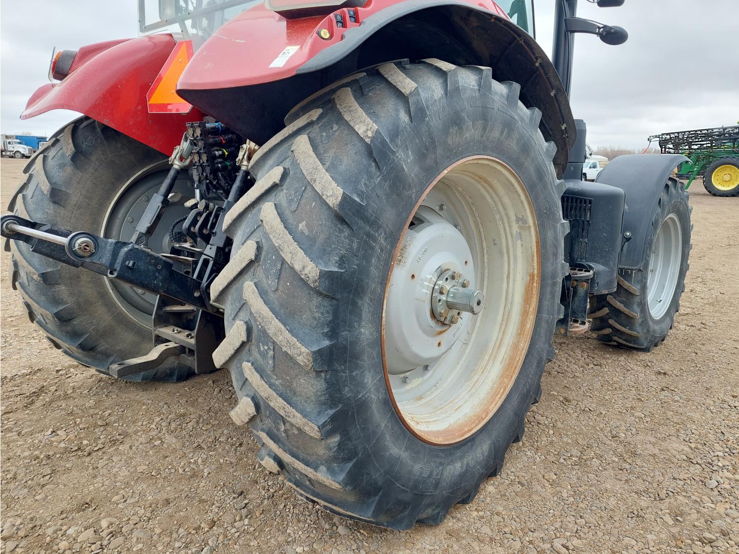 6.7 L 6 cylinder 150 HP, diesel engine, DEF required, 125 PTO HP, 18 speed power shift transmission, cab, left hand reverser, front and rear differential lock, joystick, A/C, radio, buddy seat, front 3 point hitch, loader mounts, mid mount hydraulic connection, 540/1000 PTO, 3 point hitch, 3 point hitch exterior control, 4 rear hydraulic outlets, 380/85R30 front tires, 480/80R42 rear tires