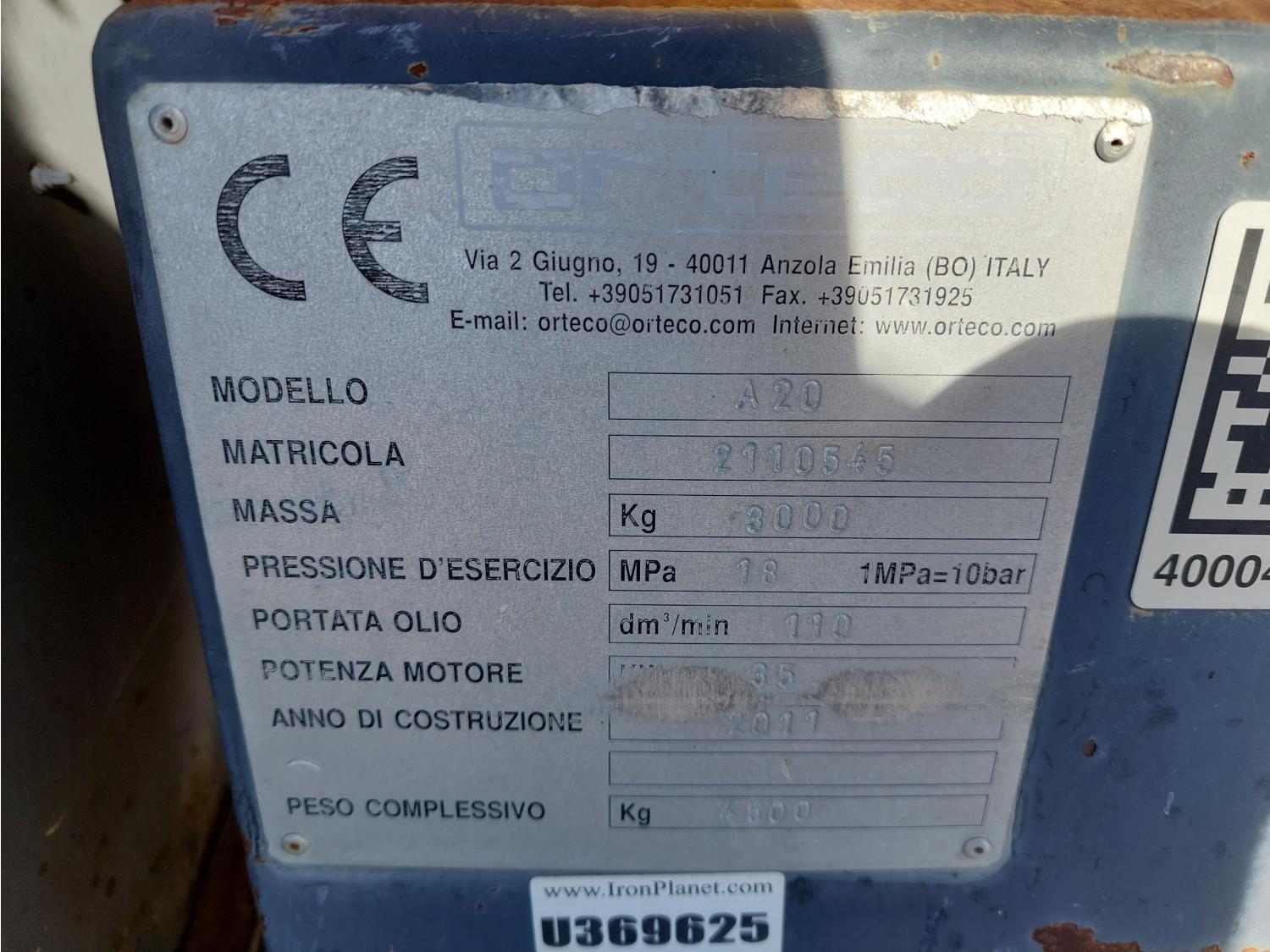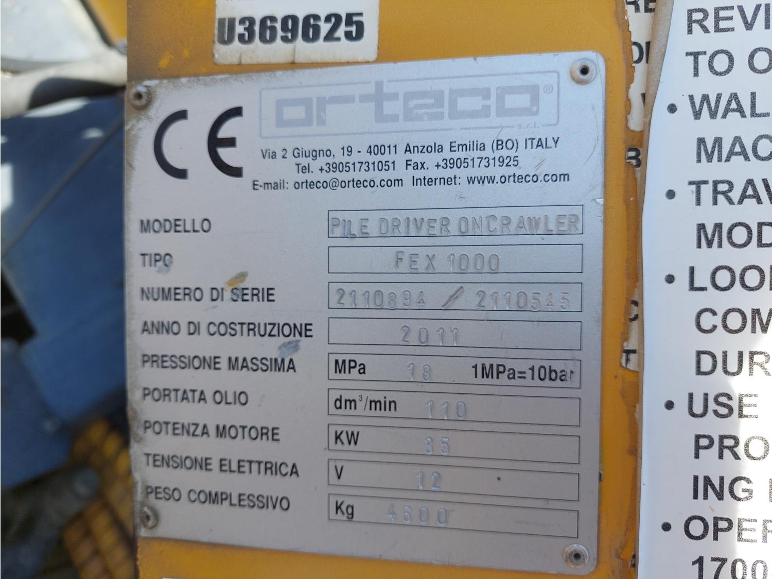 44HP 2.6L 3 cylinder Hatz diesel engine, Orteco A20 pile driver, Gemmo Group A3-20 under carriage, 12 inch track