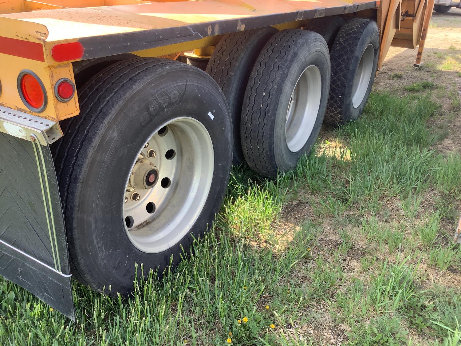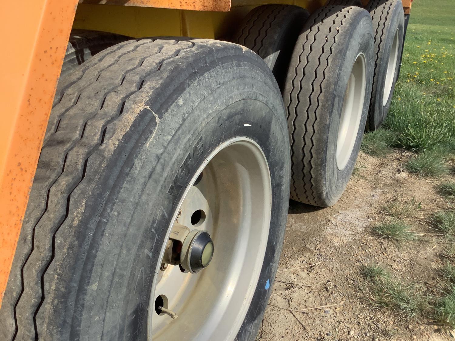 roll tarp, push block, air ride suspension, two hopper, air vibrator, air operated hopper openers, tri drive neck, oscillating 5th wheel, all aluminum wheels, 11R24.5 tires