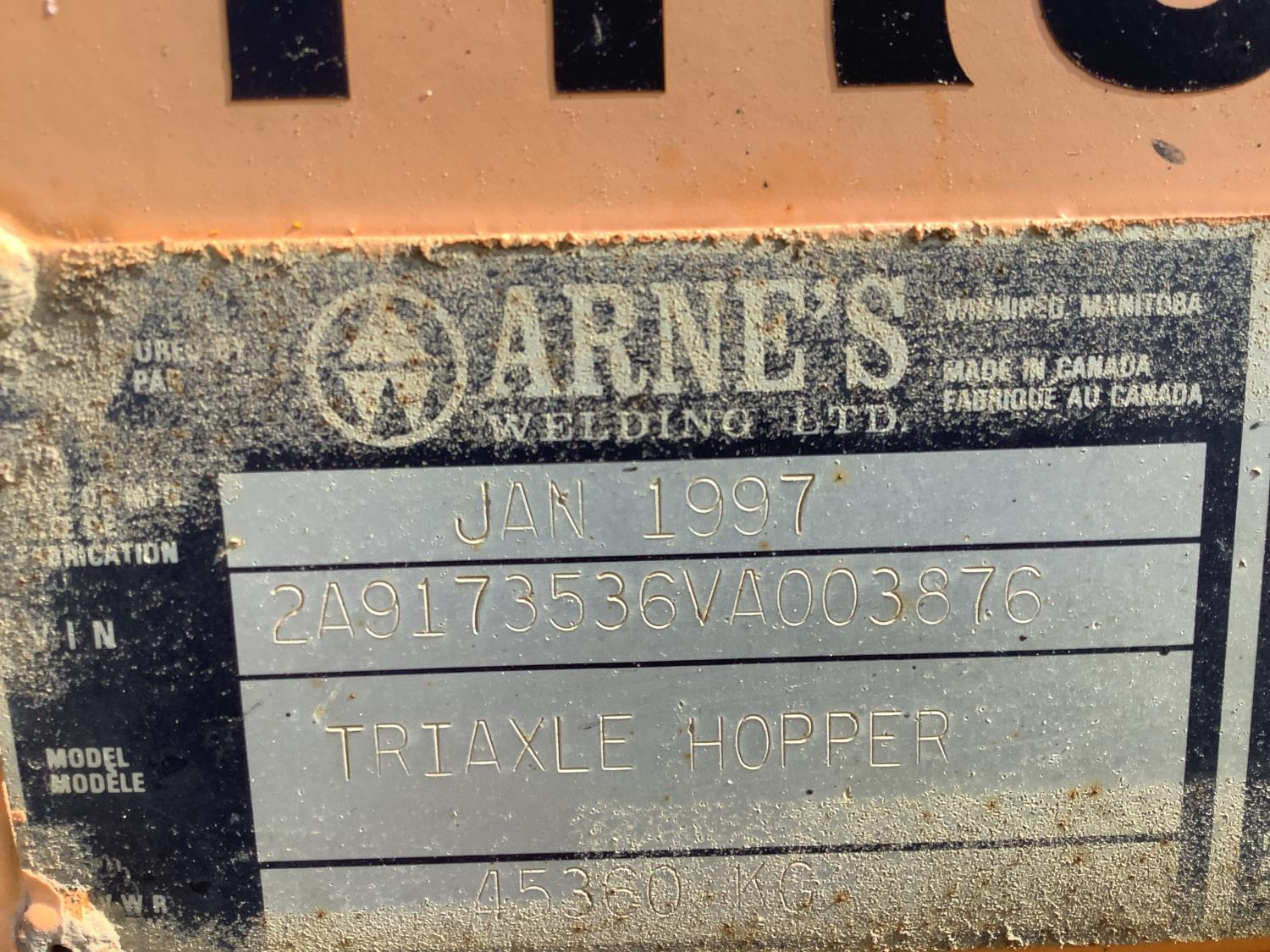 288A 1997 Arnes Tri-Axle Cross Clam Bottom Dump Trailer