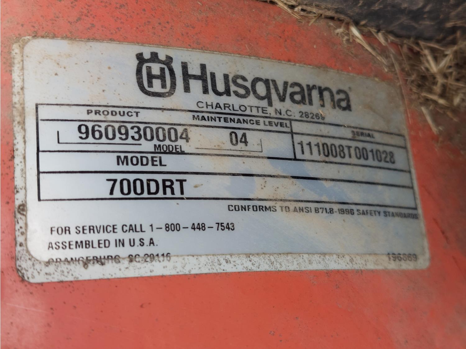 1731 Husqvarna 700DRT 17 Inch Rear Tine Rotary Tiller