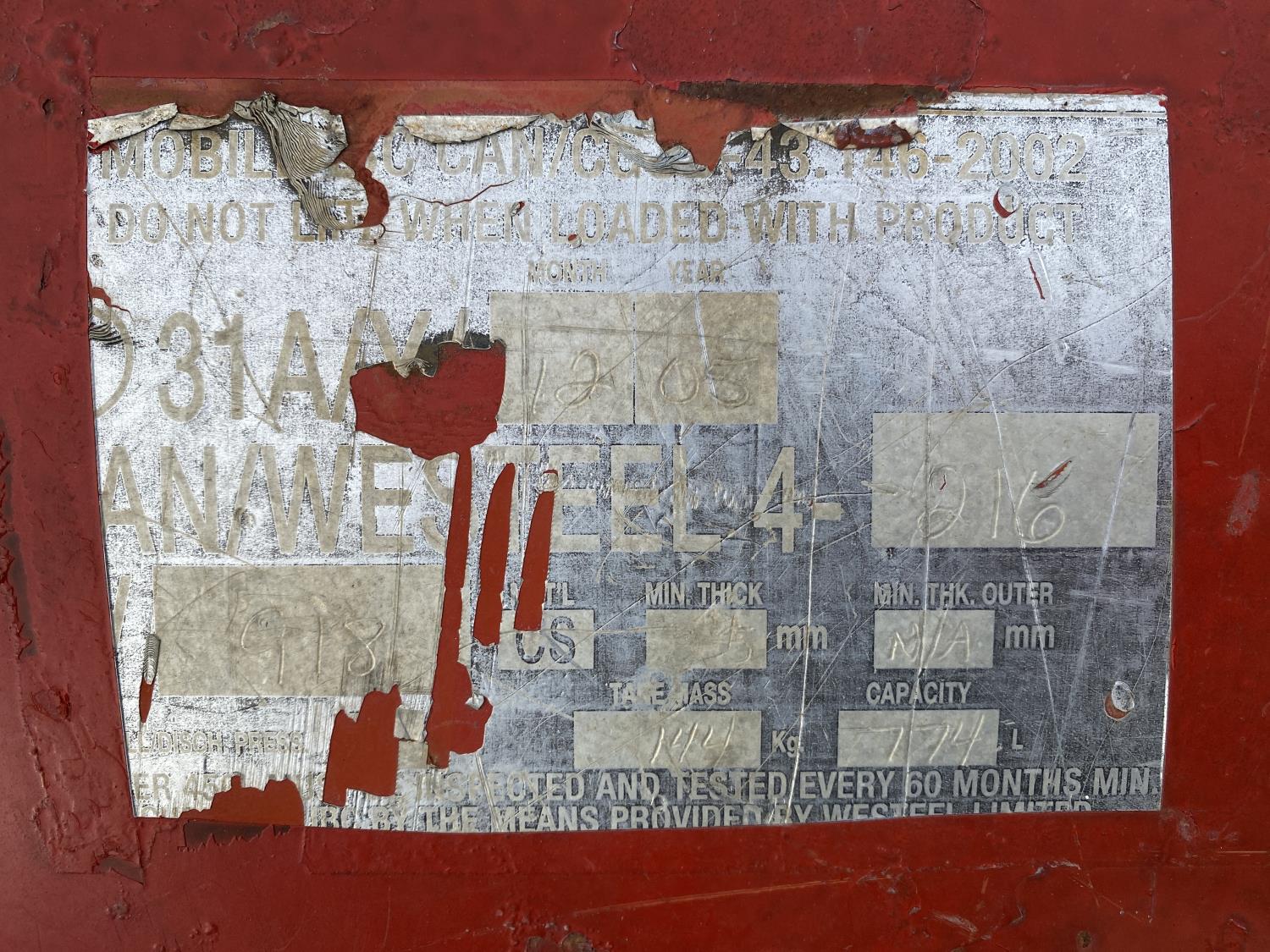 1543 2005 Westeel 775L Fuel Tank