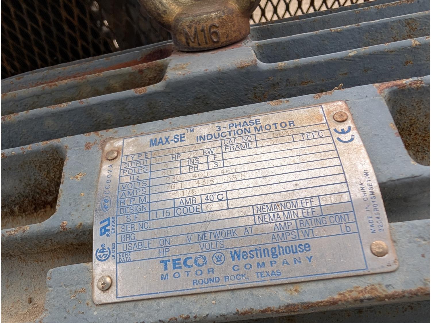 1525 Westinghouse MAX-SE 30 HP Electric Motor w/ Heat Exchanger