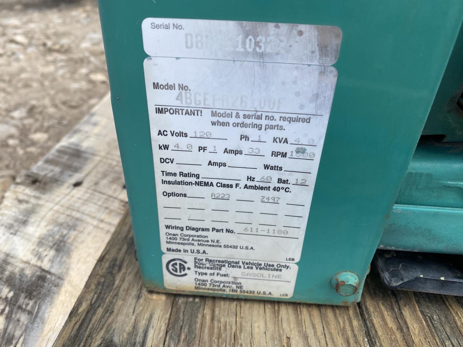 1565 Onan Emerald I 4 Kw Generator