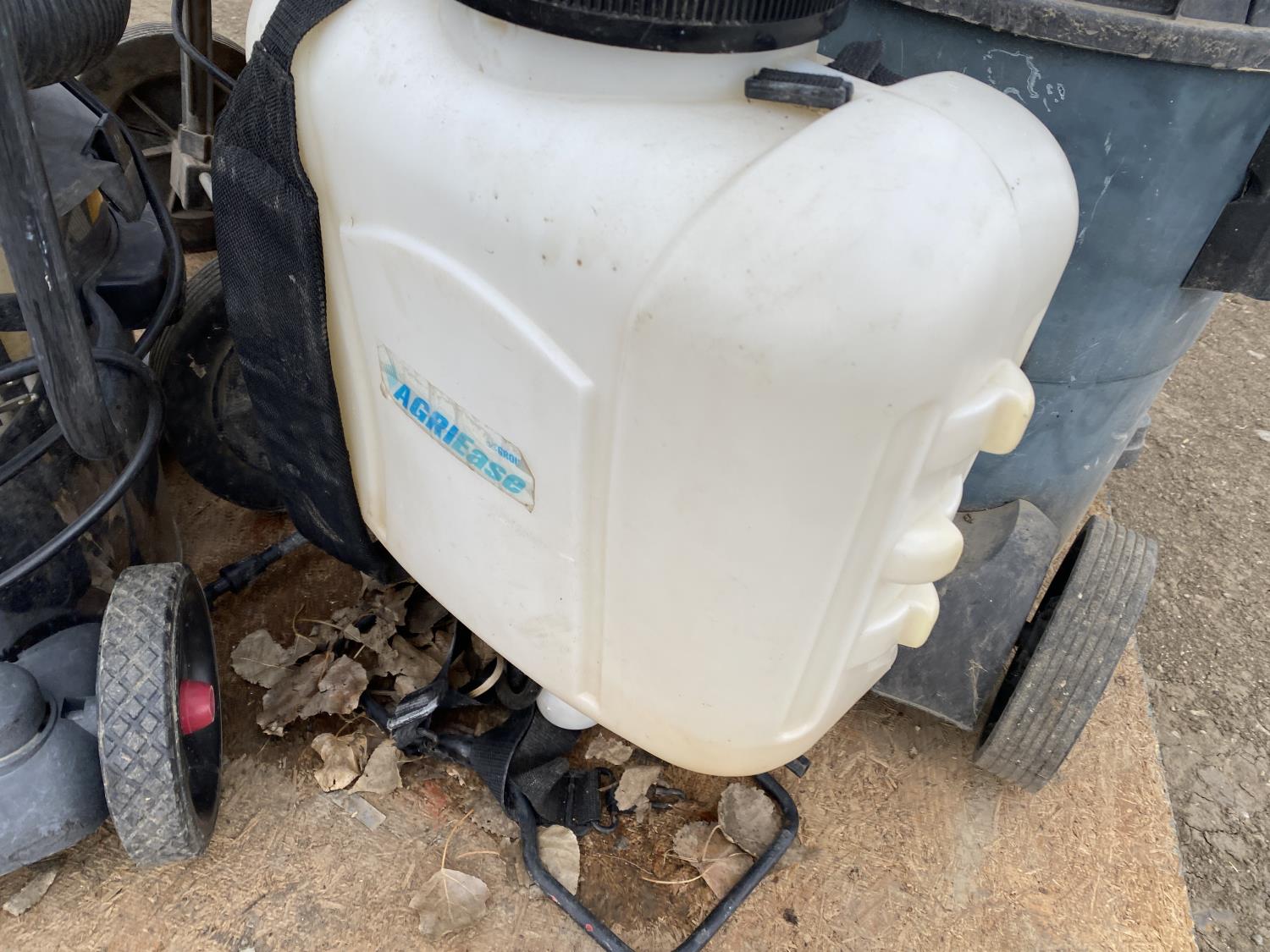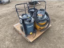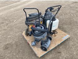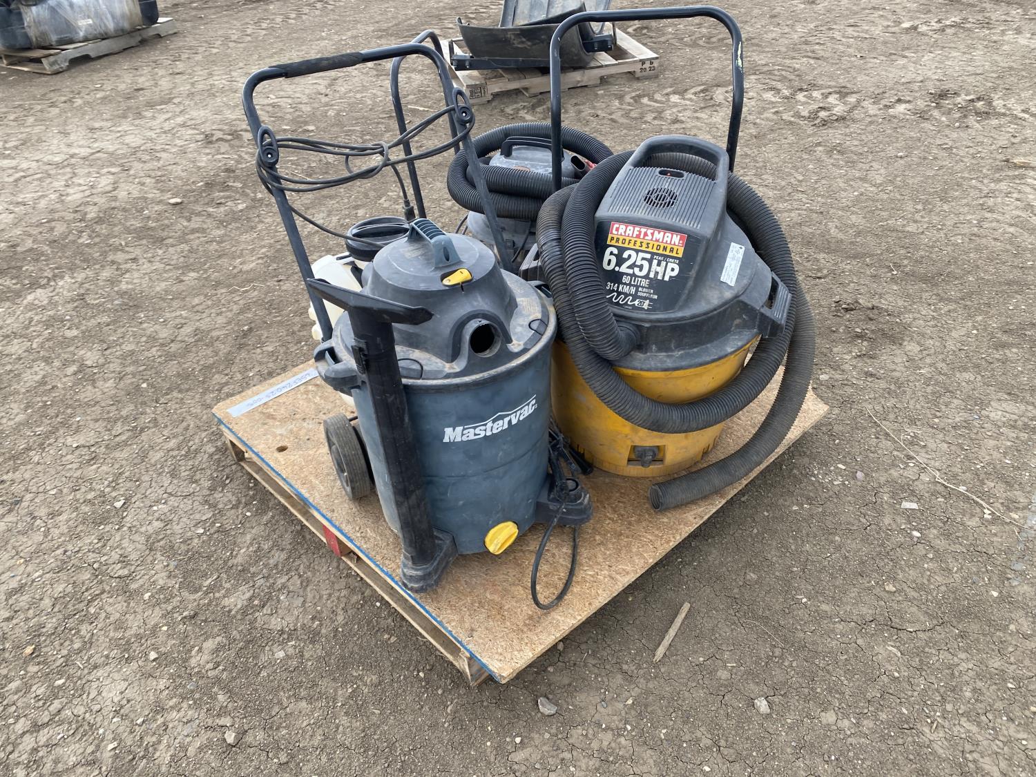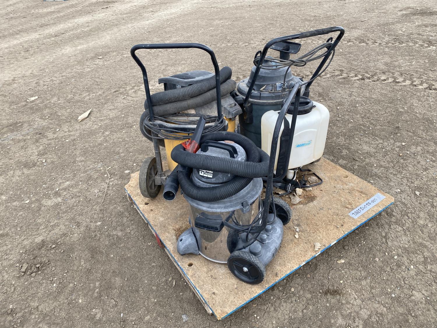 (1) 5.5 HP 8 gallon shop vac, (1) 6.25 HP 16 gallon craftsman professional, (1) 12 gallon Mastervac, (1) Agriease backpack sprayer