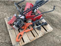 10 inch rotarytiller, inoperable snowblower, Black & Decker string trimmer & leaf blower