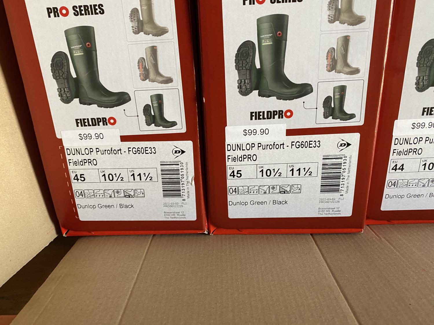 1011 Qty of (6) Dunlop Purofort FieldPRO Rubber Boots (Unused)