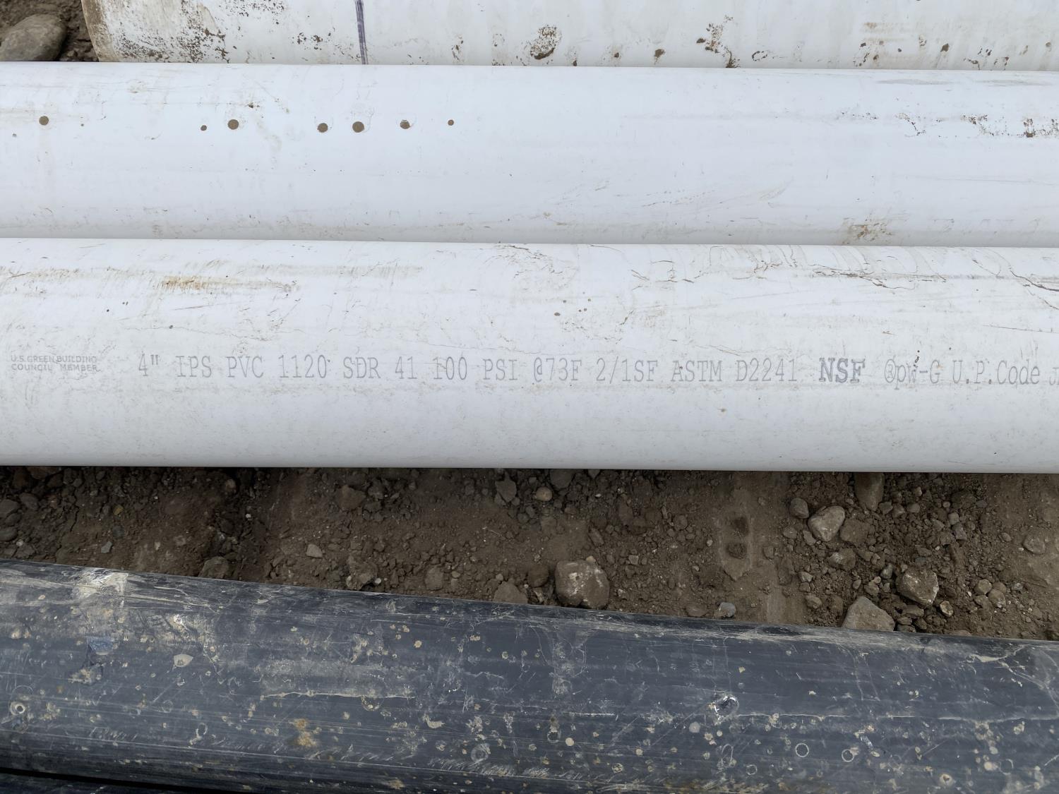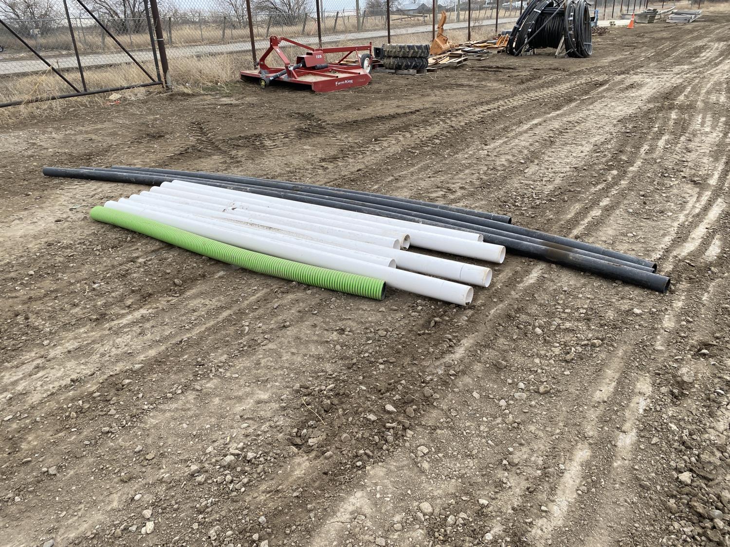 (6) PVC pipes lengths vary from 99 inch - 126 inch, (4) fuse pipe lengths vary from 120 inch - 216 inch, (1) 108 inch L 4 inch hose