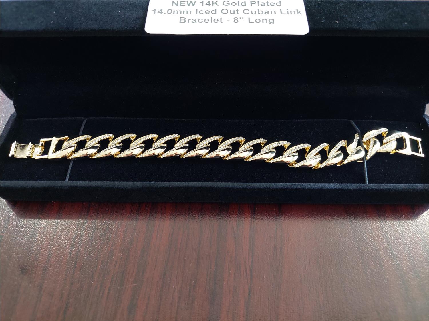 1035 Smartlife 14K Gold Plated 14.0mm Iced Out Cuban Link Bracelet (Unused)