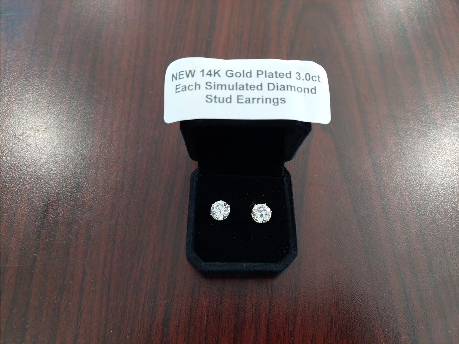 1032 Smartlife 14K Gold Plated 3.0ct Simulated Diamond Stud Earrings (Unused)