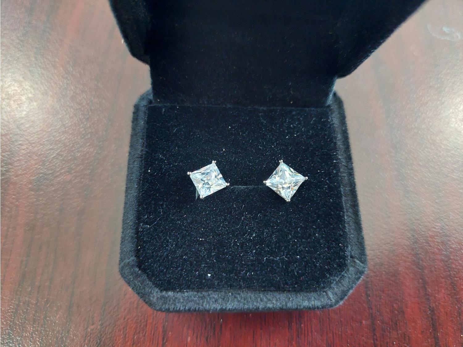 1030 Smartlife Platinum Plated 1.0ct Princess Cut Simulated Diamond Stud Earrings (Unused)