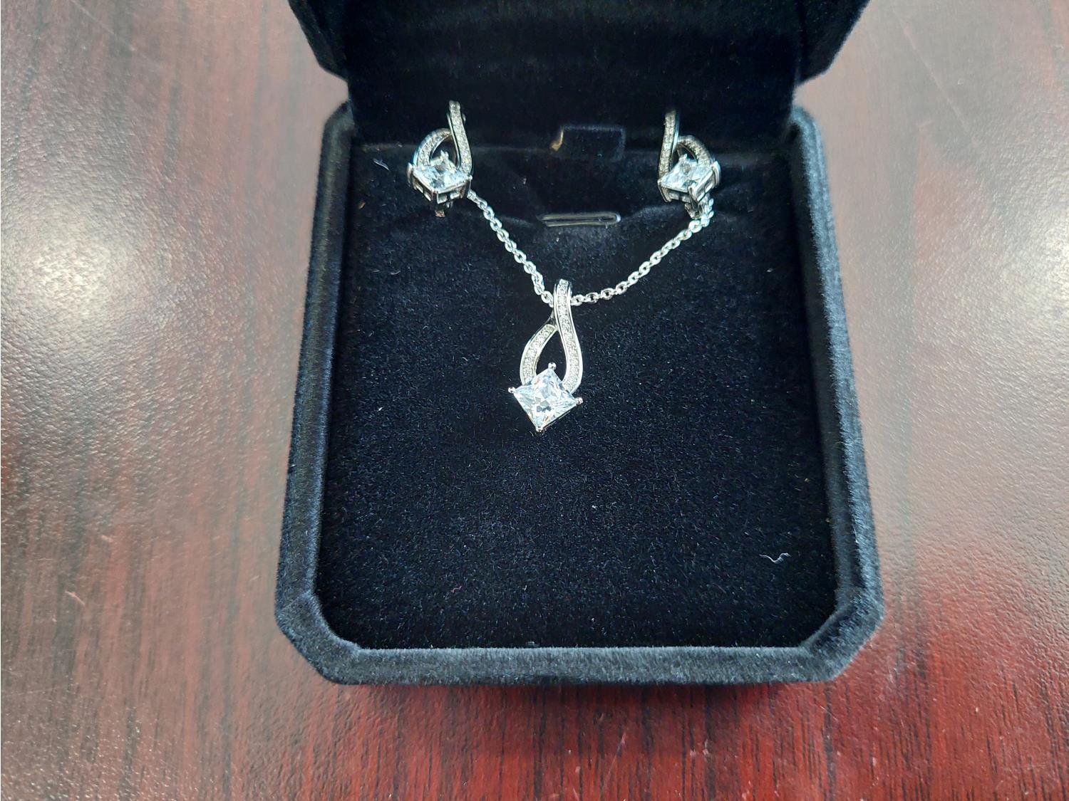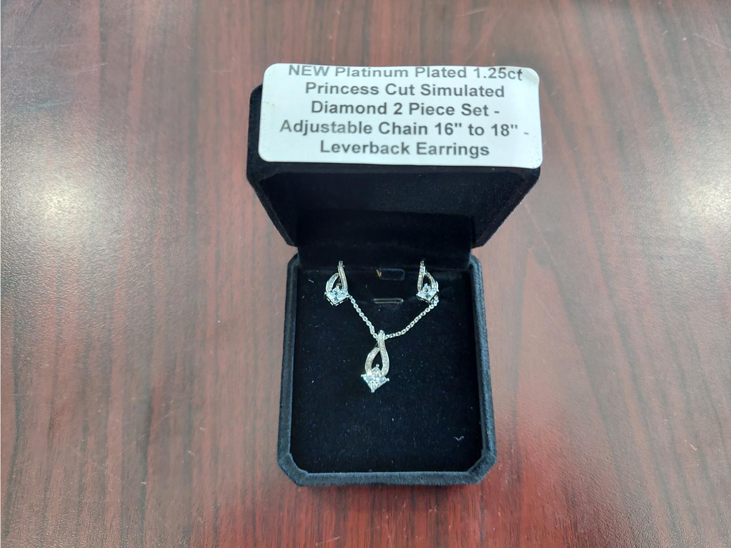 1034 Smartlife Platinum Plated 1.25ct Princess Cut Simulated Diamond 2 Piece Set (Unused)