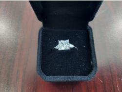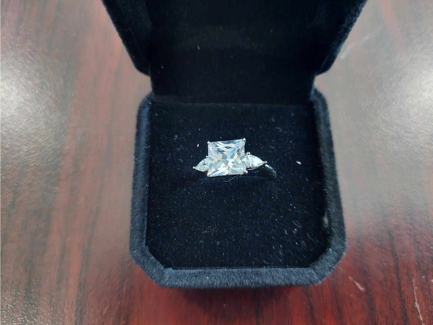 w/ pear side stones, mounted in 925 sterling silver w/ white gold overlay, size 7