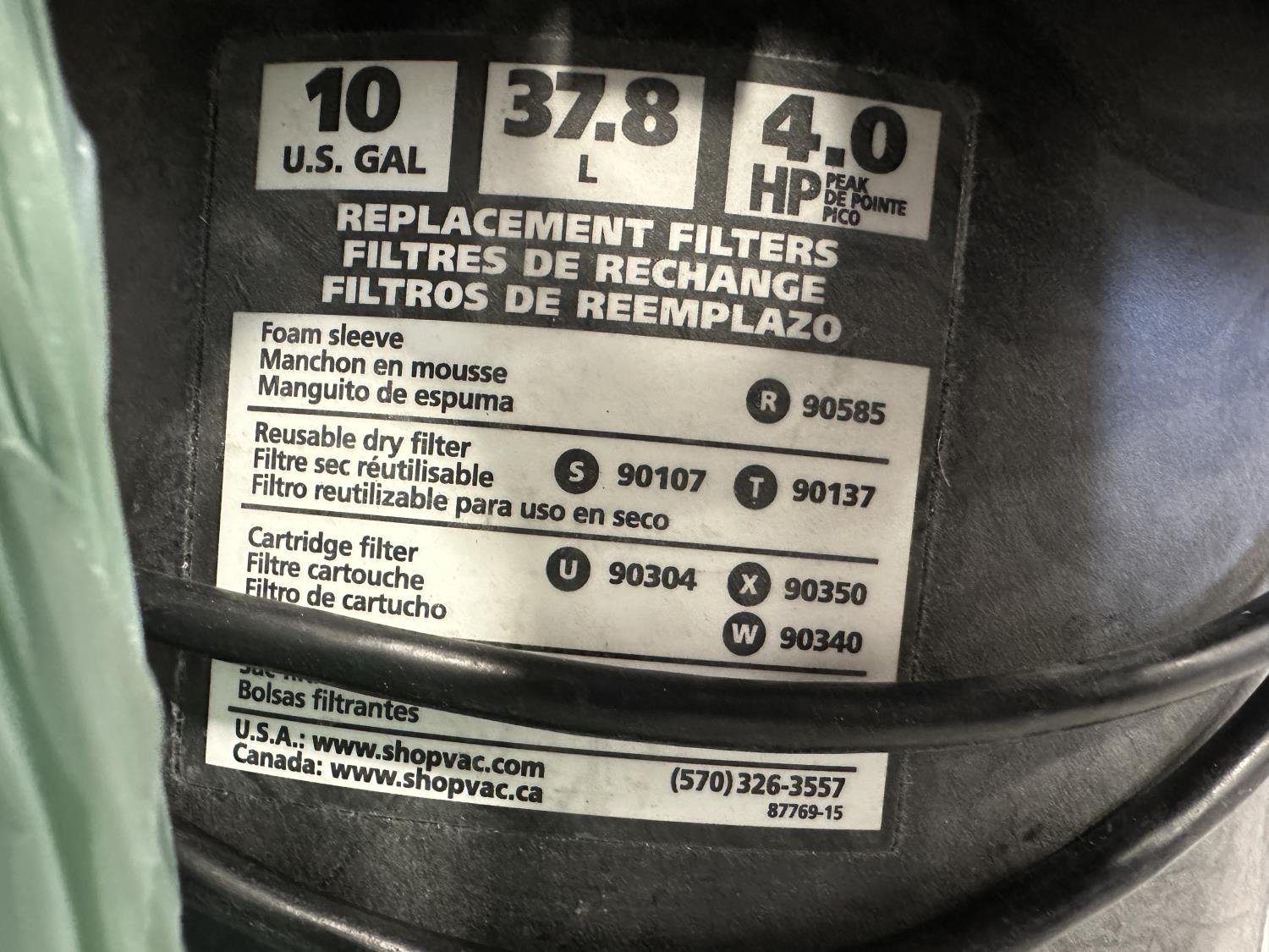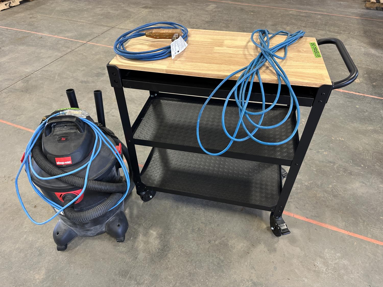 5170 Shop-Vac 10 Gallon Wet/Dry Vacuum, Rolling Bench Top Cart and (3) Extension Cords