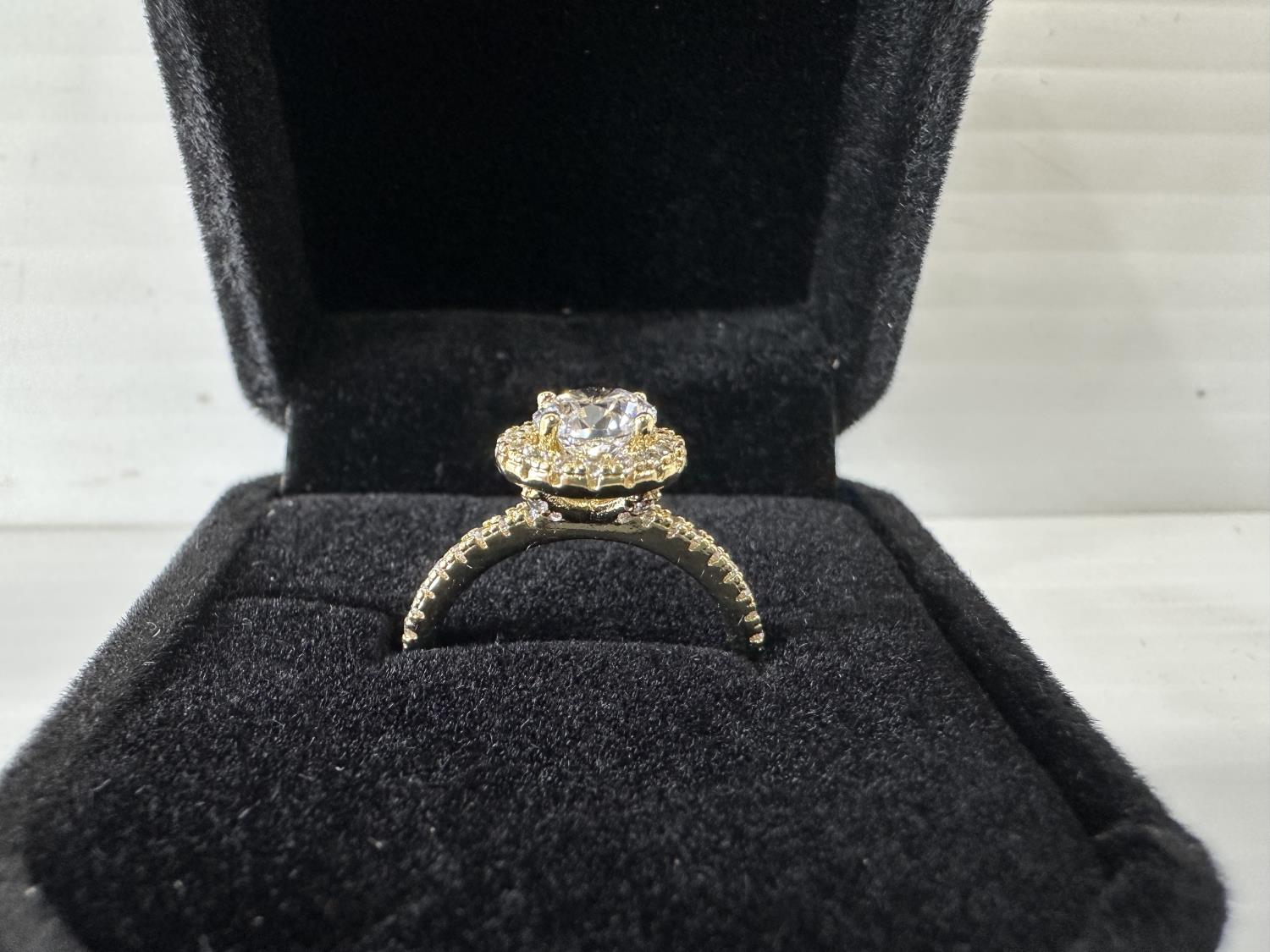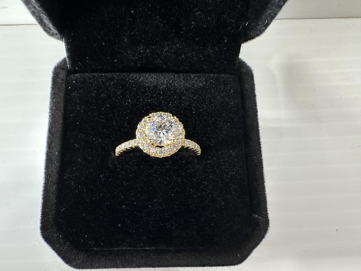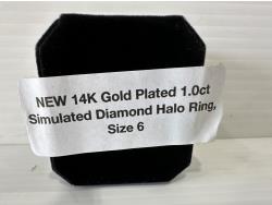 5009 Smartlife 14K Gold Plated 1.0 Ct Simulated Diamond Halo Ring - Size 6 (Unused)