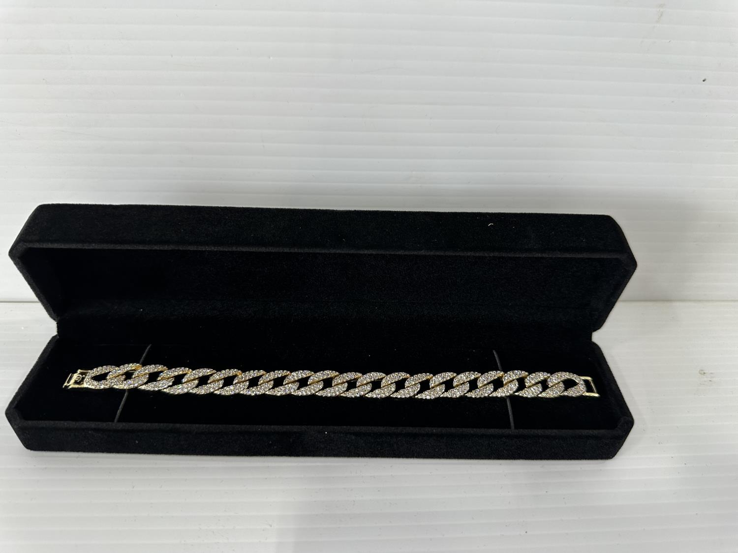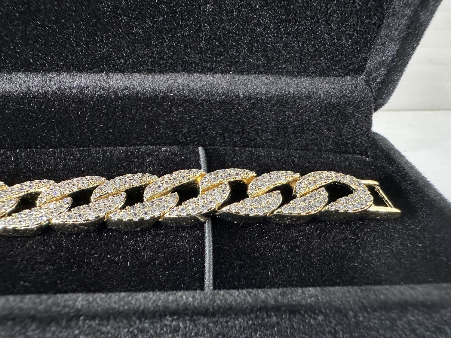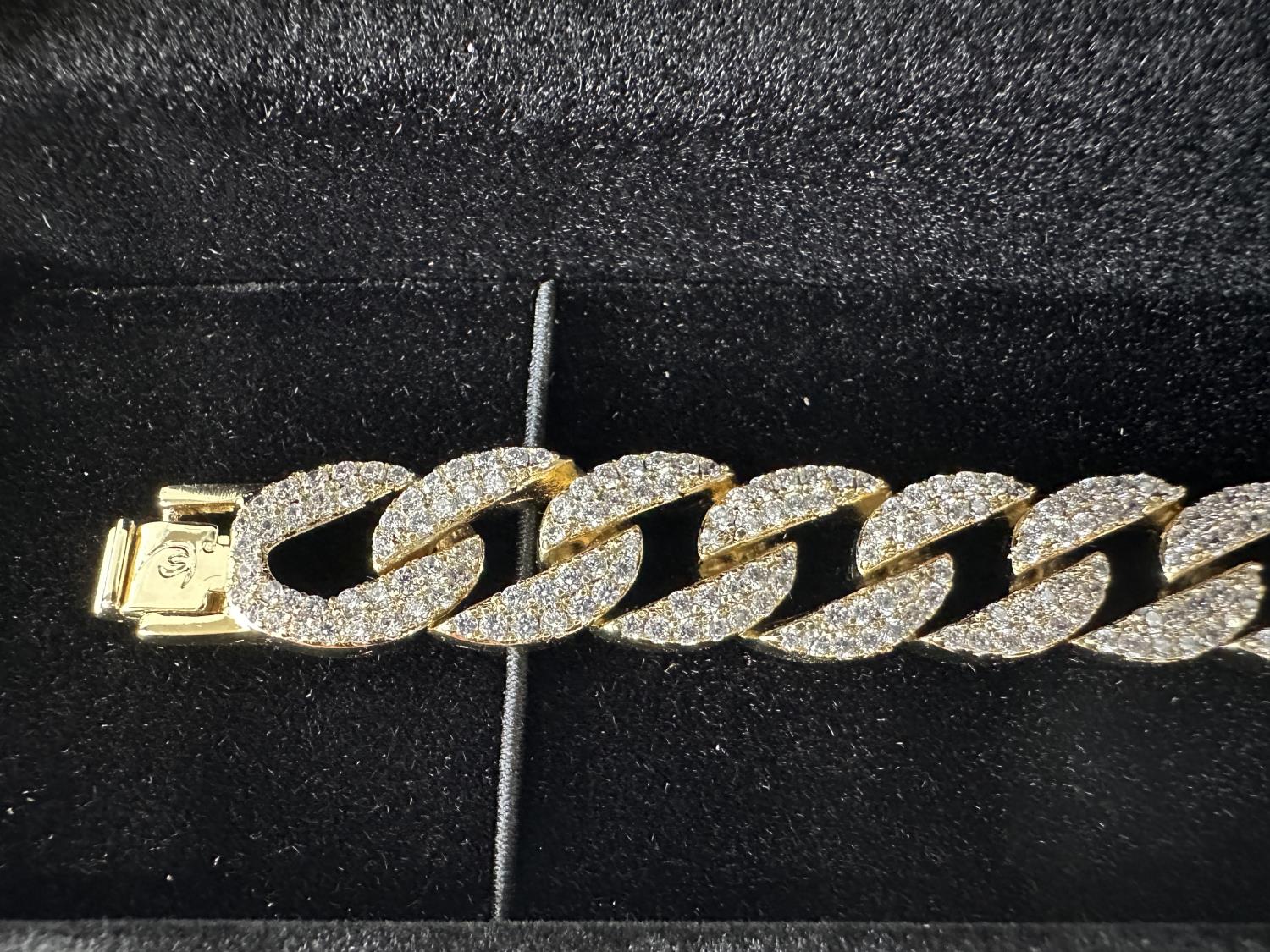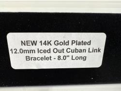 5022 Smartlife 14K Gold Plated 12.0 mm Iced Out Cuban Link Bracelet (Unused)