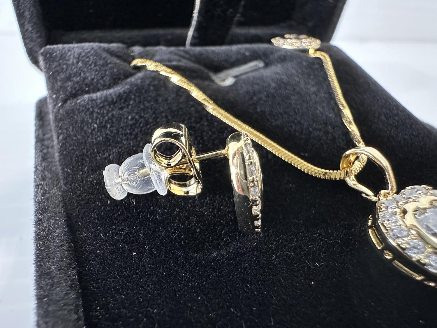 5016 Smartlife 14K Gold Plated 2.0 Ct Heart Cut Simulated Diamond 2 Piece Set (Unused)