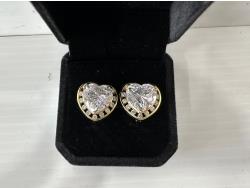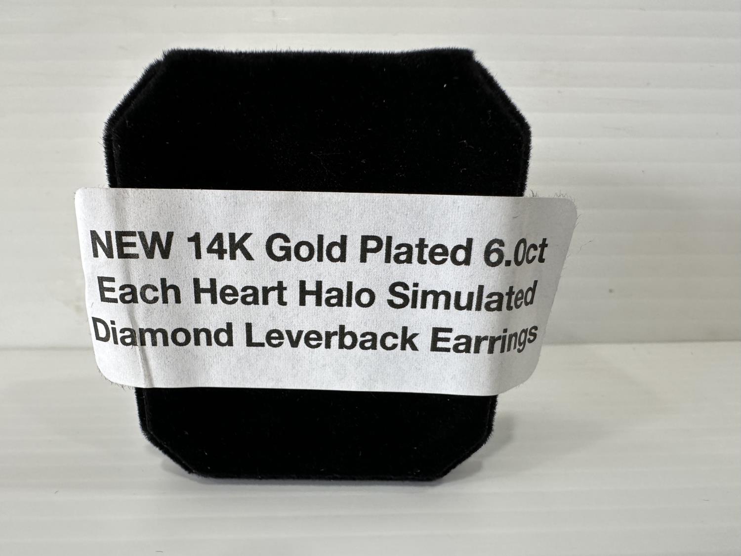 5012 Smartlife 14K Gold Plated 6.0 Ct Each Heart Halo Simulated Diamond Leverback Earrings (Unused)