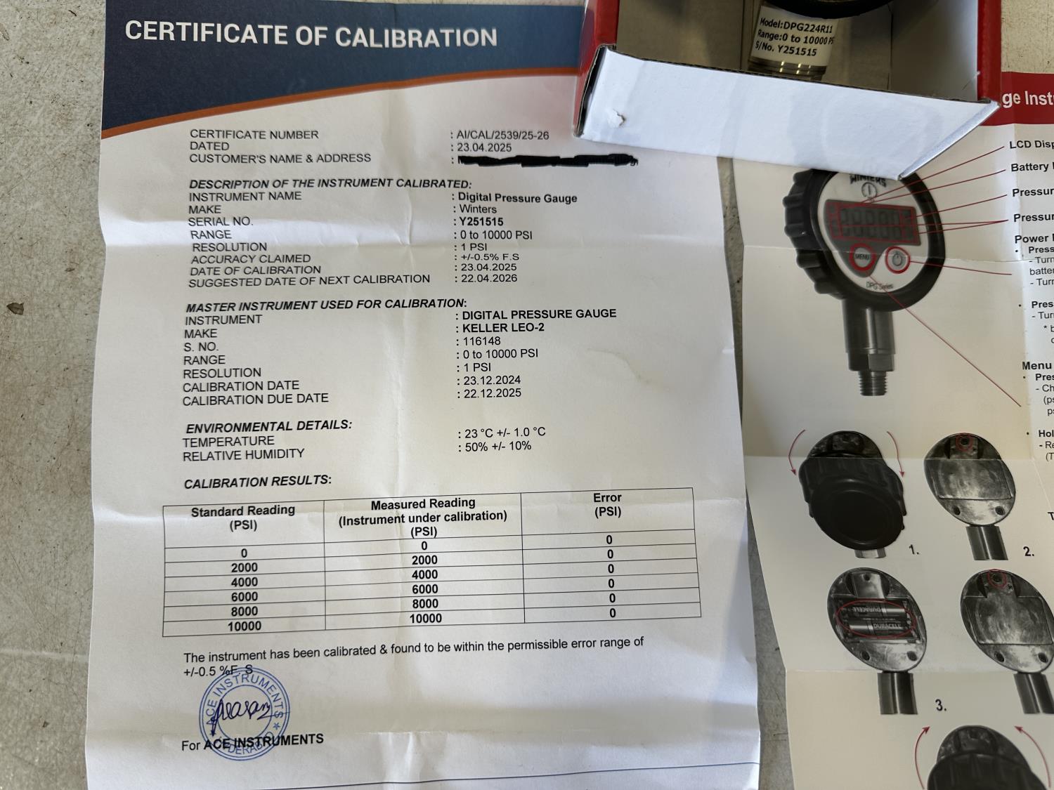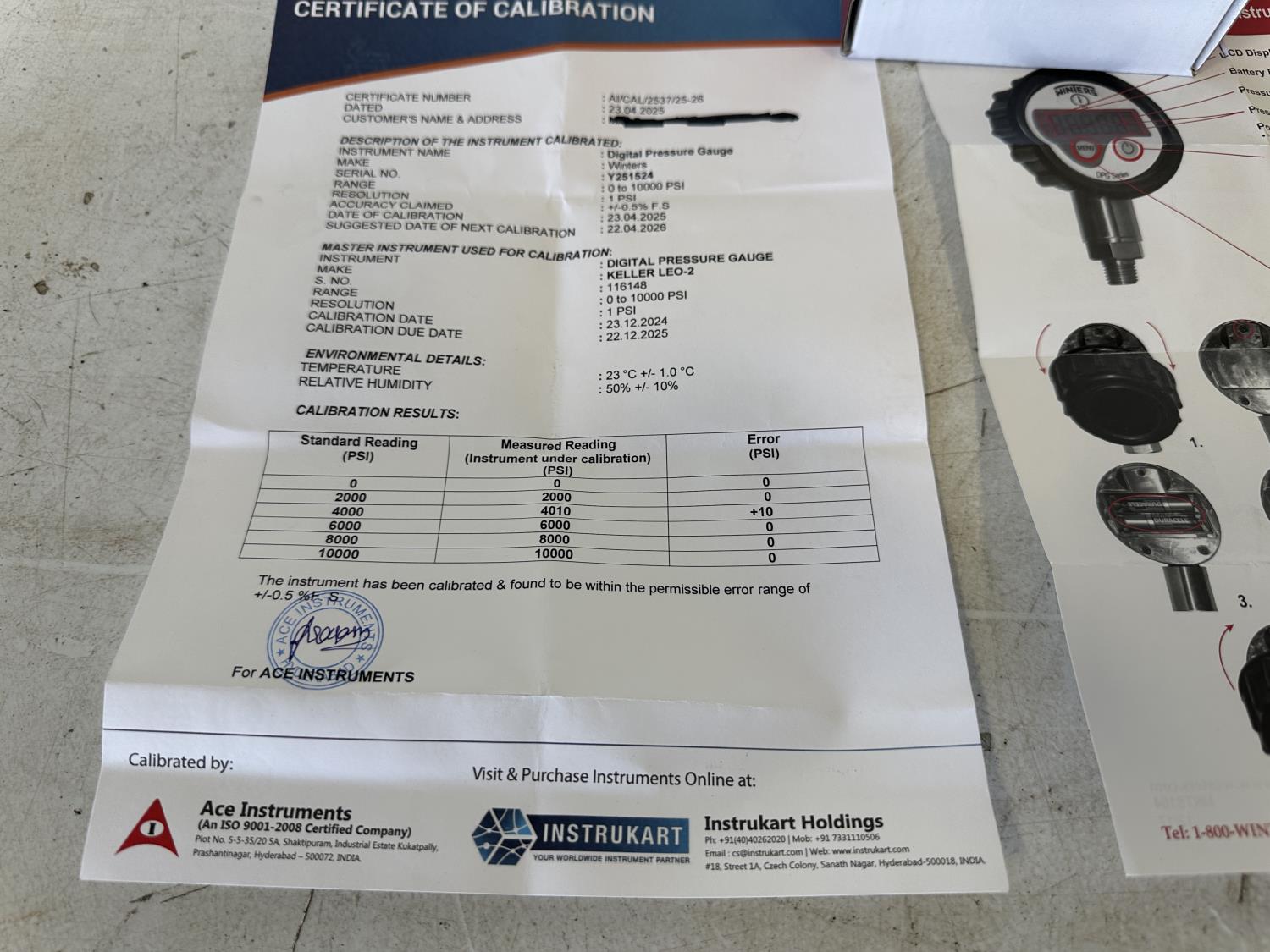 5065 (2) Winters 0-10,000 PSI Digital Gauges (Unused)