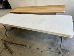 Wooden table 90 inch w x 30 inch d x 30 inch h, plastic 96 inch w x 30 inch d x 29 inch h, folding plastic table 72 inch w x 29 inch d x 29 inch h