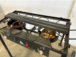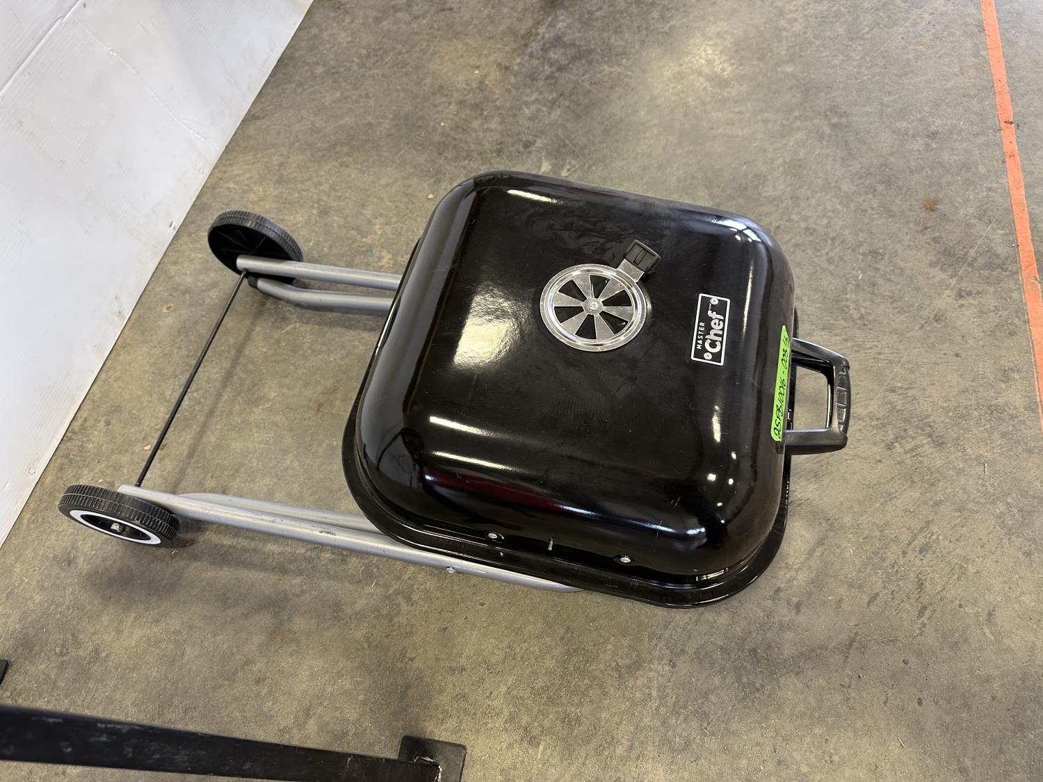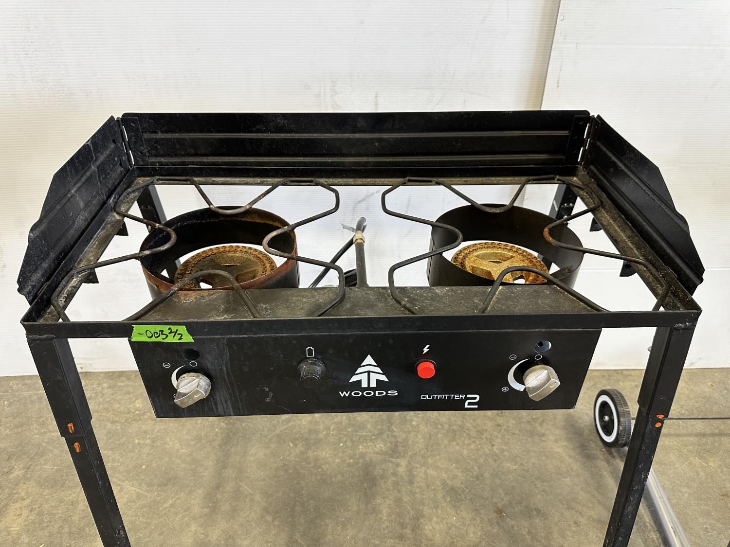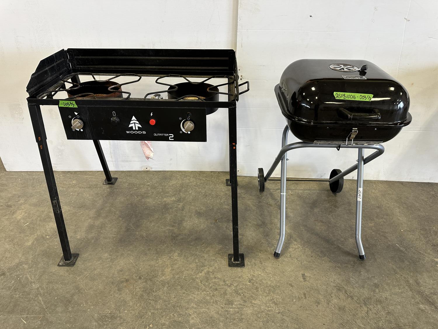 5187 Master Chef Portable Charcoal Grill (Unused) and Woods Propane Double Burner Stove