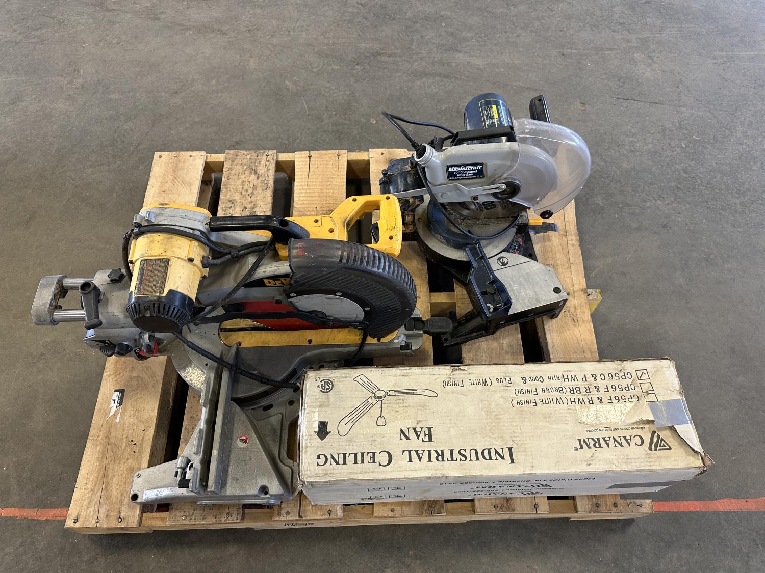 5183 Mastercraft 10 Inch Compound Miter Saw, Dewalt 12 Inch Sliding Compound Miter Saw and Industrial Ceiling Fan
