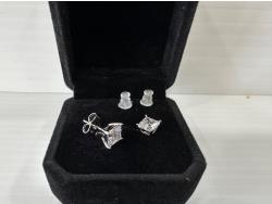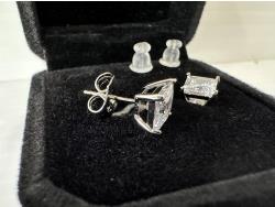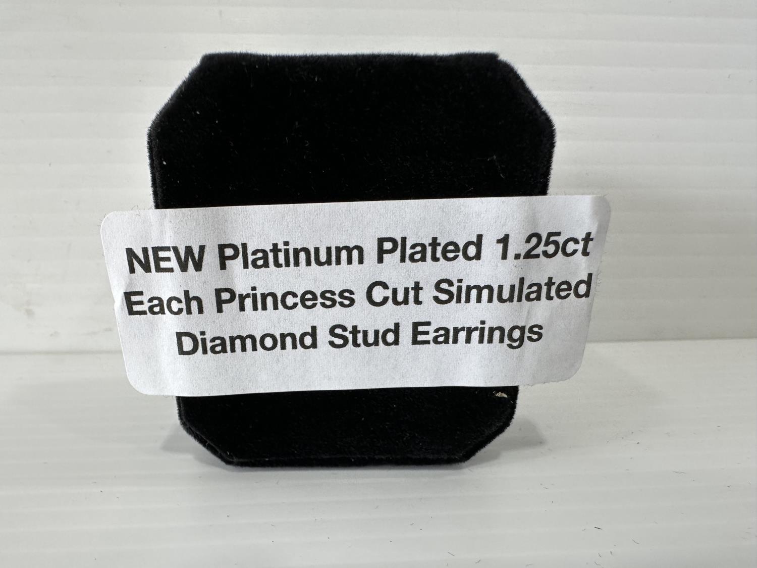5014 Smartlife Platinum Plated 1.25 Ct Each Princess Cut Simulated Diamond Stud Earrings (Unused)