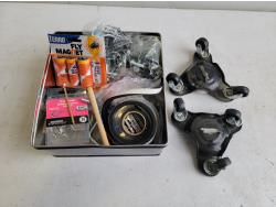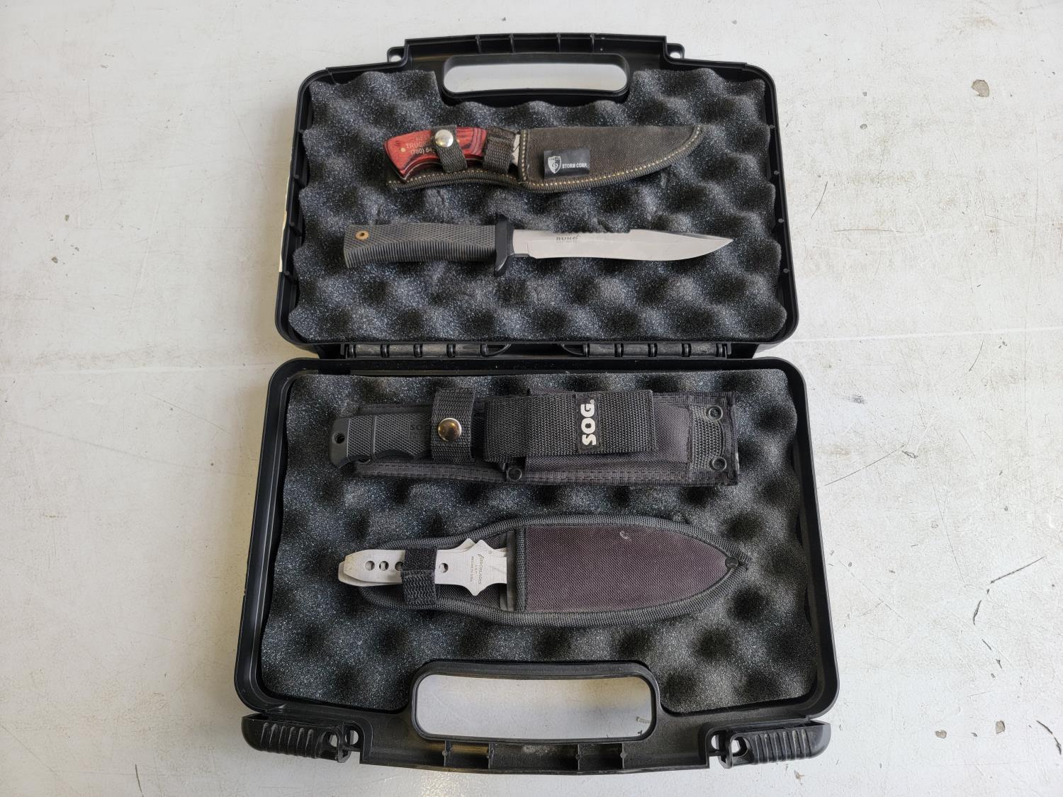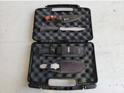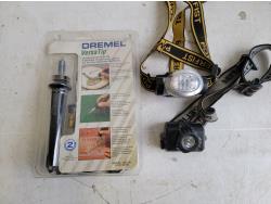 Heater, Stealth Cam trail camera, scale, knives