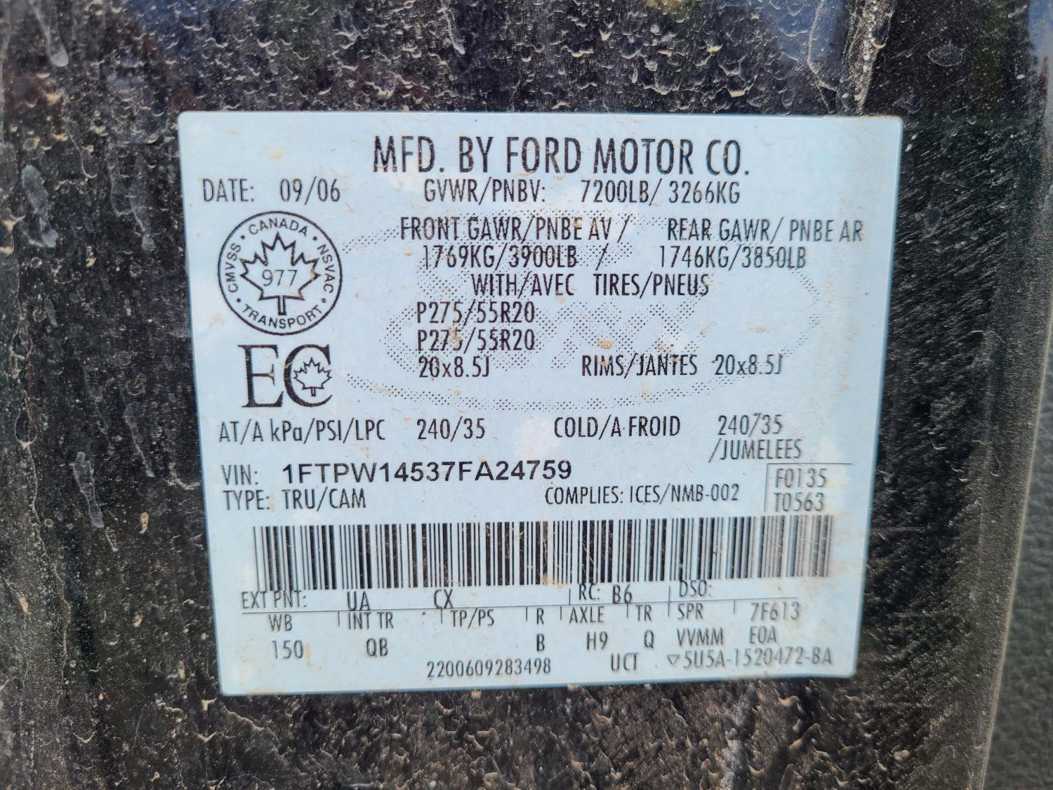 - 1FTPW14537FA24759