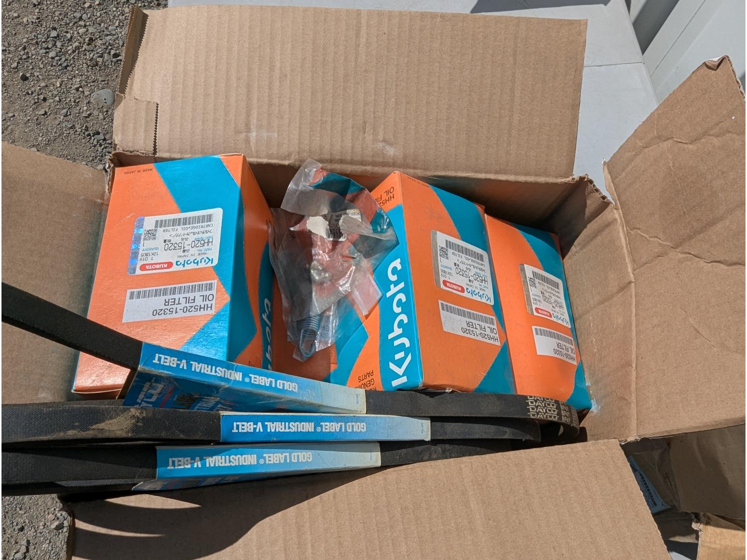 Kubota belts, filters, DEF Header, brass fittings and other assorted items