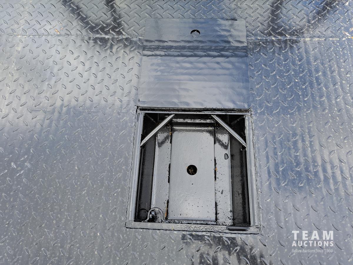 84 inch wide, hidden goose neck ball hitch with cover, rear 2 inch receiver hitch, clearance, tail and back up lights, beam spacing 42 inch