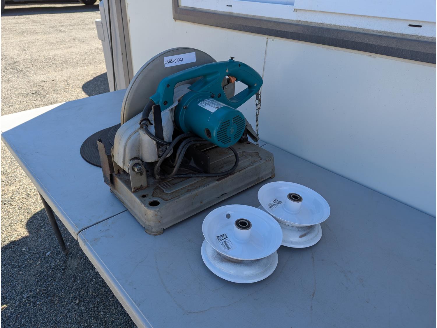 1830 14 Inch Makita Chop Saw and (2) Turf Tire Rims