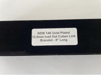 1768 14K Gold Plated 12.0 mm Iced Out Cuban Link (Unused)