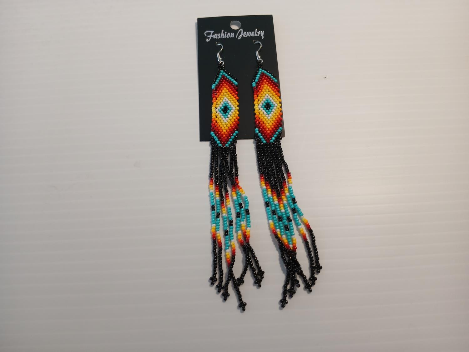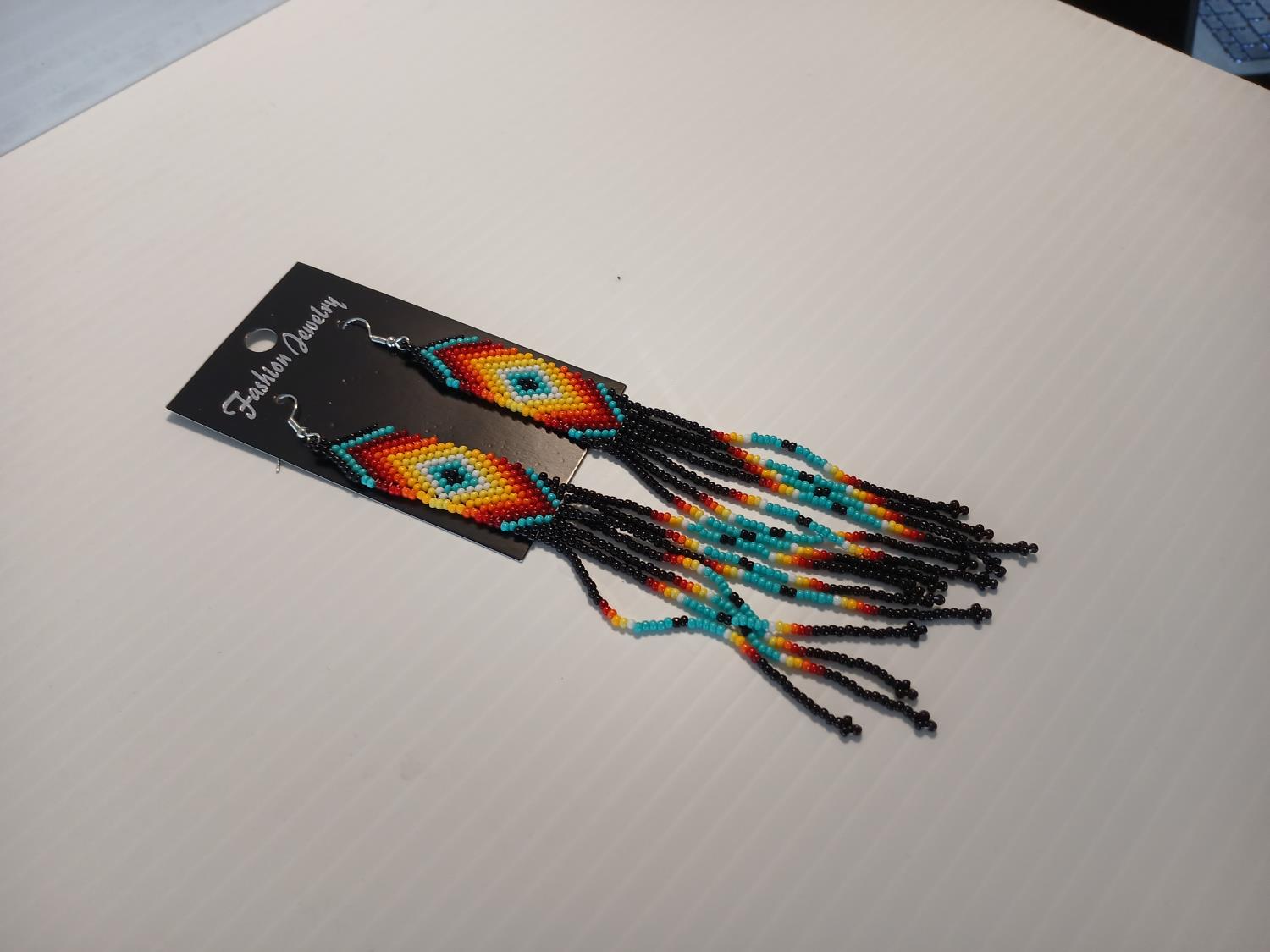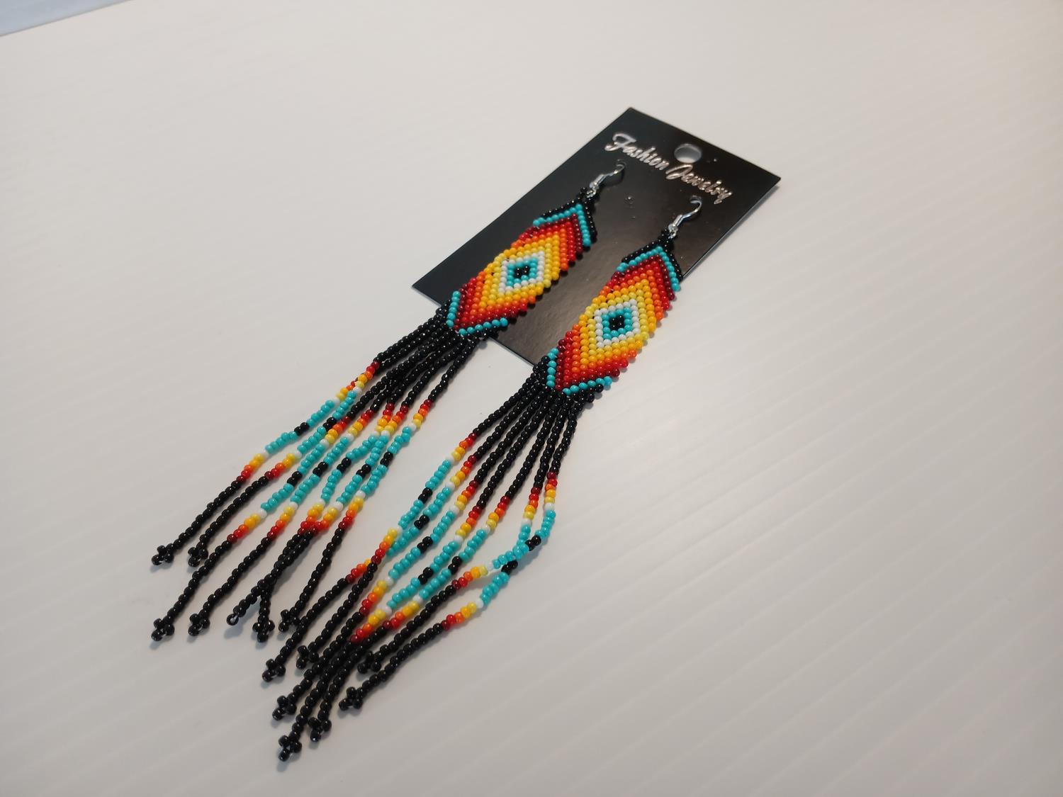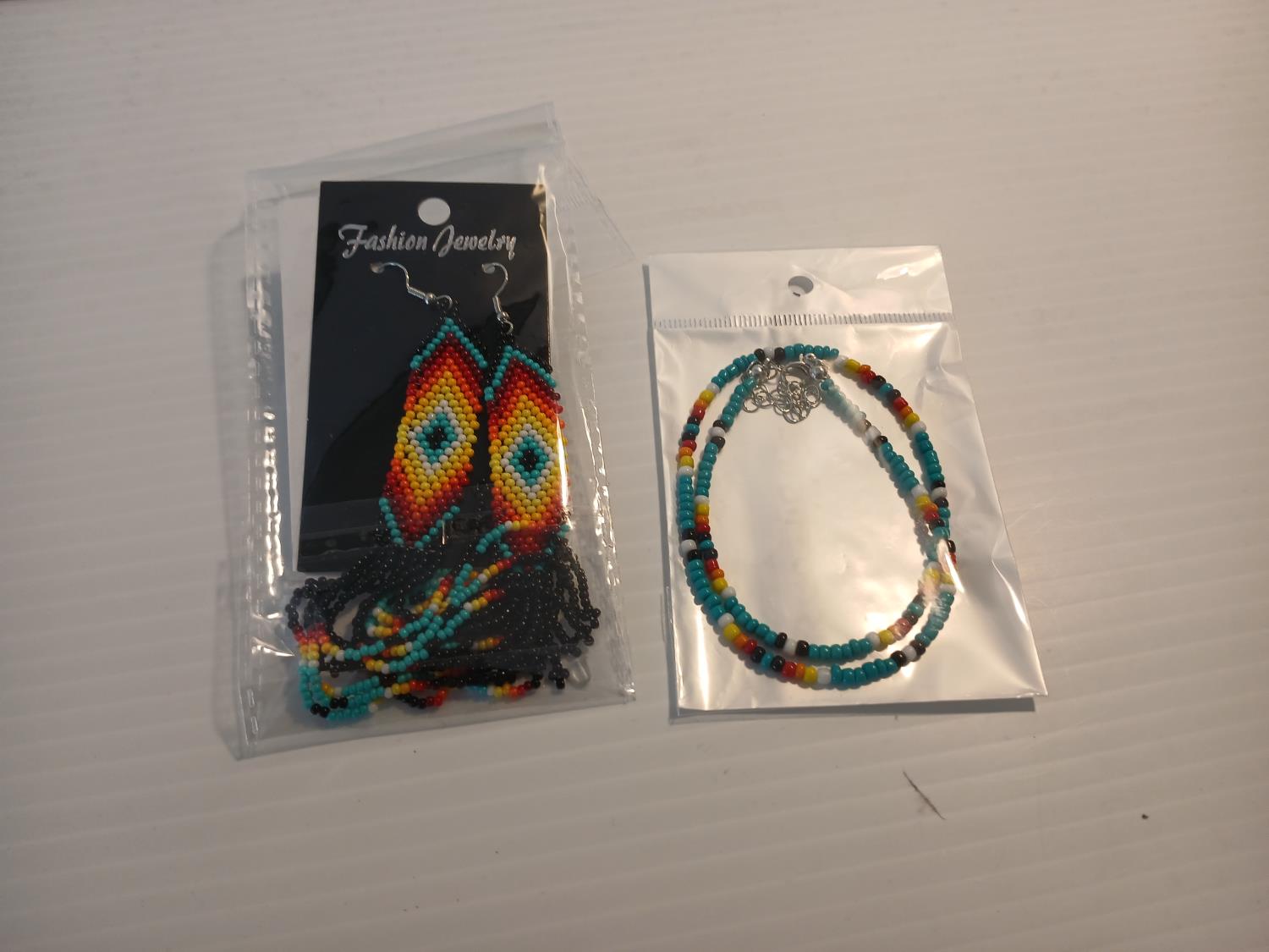 1774 Indigenous Style Beaded Earrings and Strand Necklace/ Bracelet (Unused)