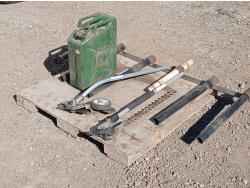 (1) Edger attachment, (1) tool rack, (1) hedge trimmer, (1) gas can