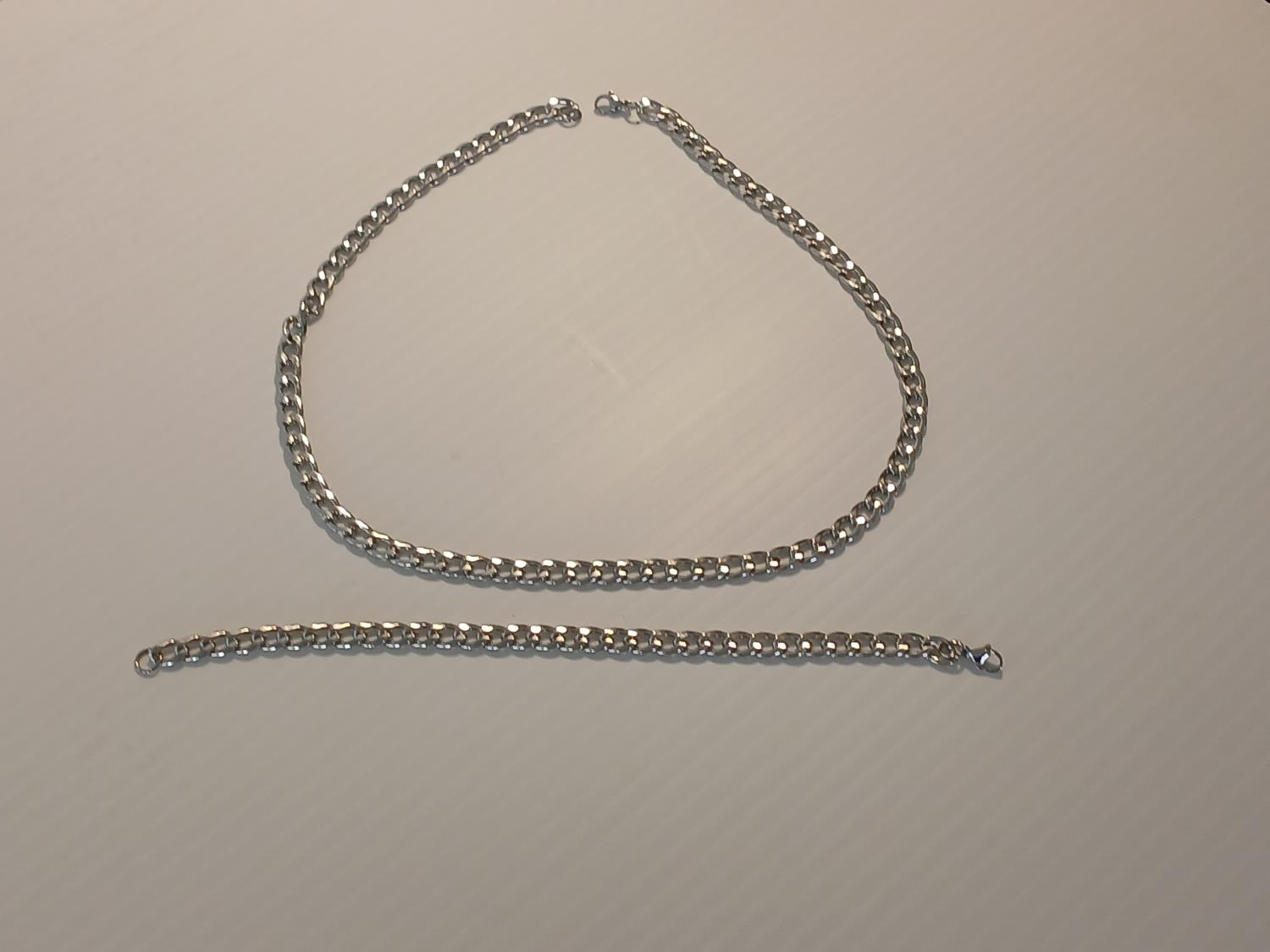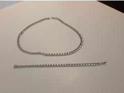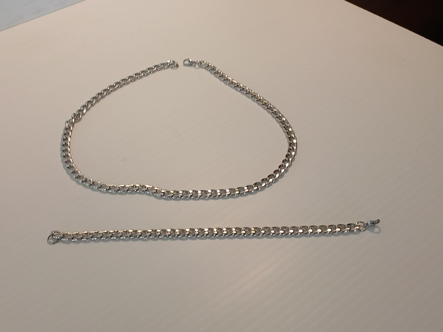 18 inch silver tone chain necklace, and 7.5 inch matching bracelet.