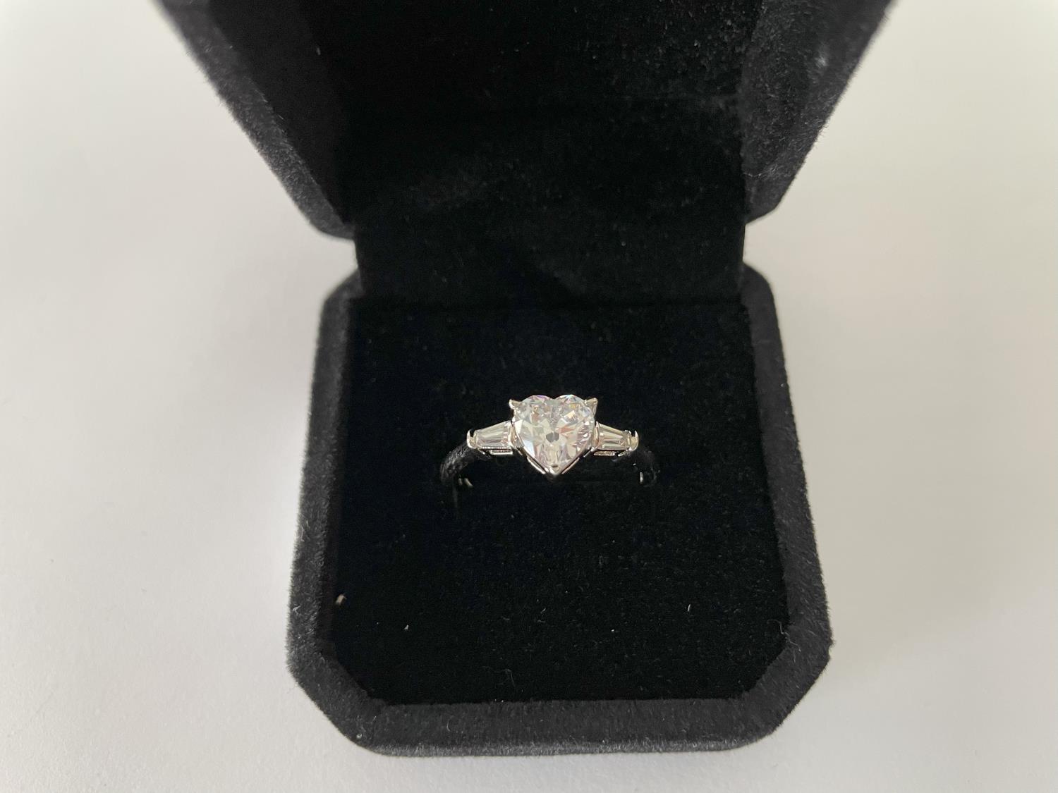 Heart cut simulated diamond trinity ring with baguette sidestones Size 9