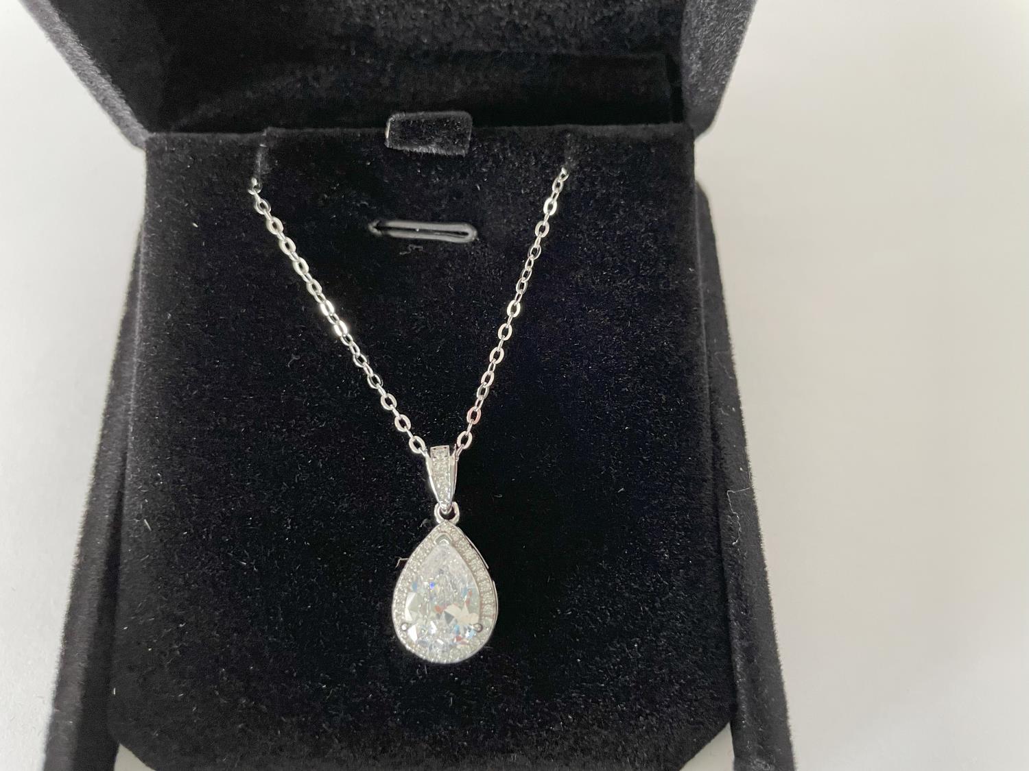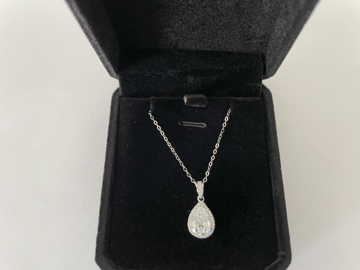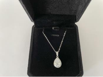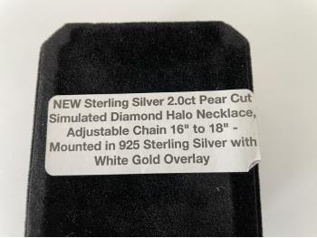 1763 Sterling Silver 2.0 Ct Pear Cut Halo Necklace (Unused)