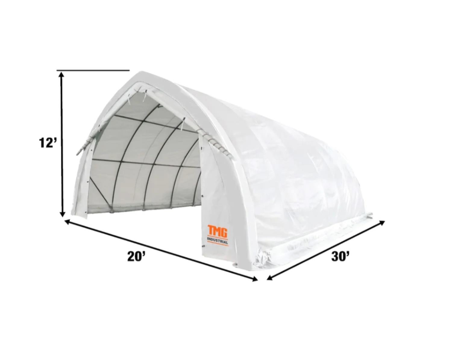 229 TMG Industrial ST2031P 20 Ft X 30 Ft Arch Wall Peak Ceiling Storage Shelter (Unused)