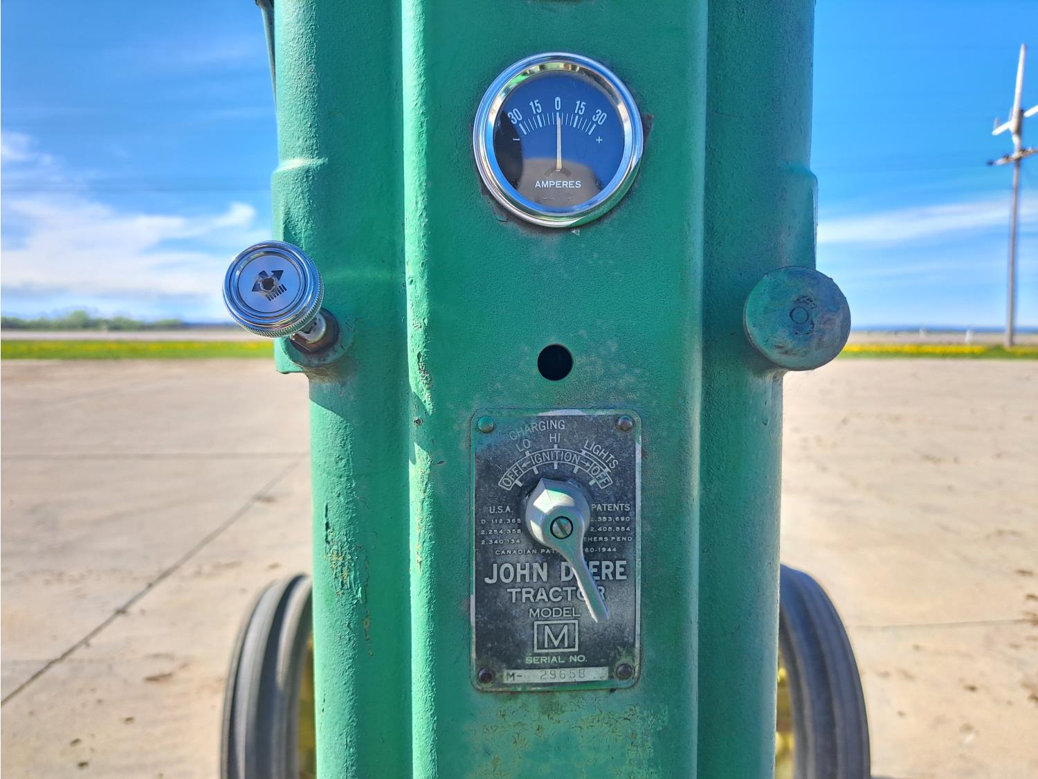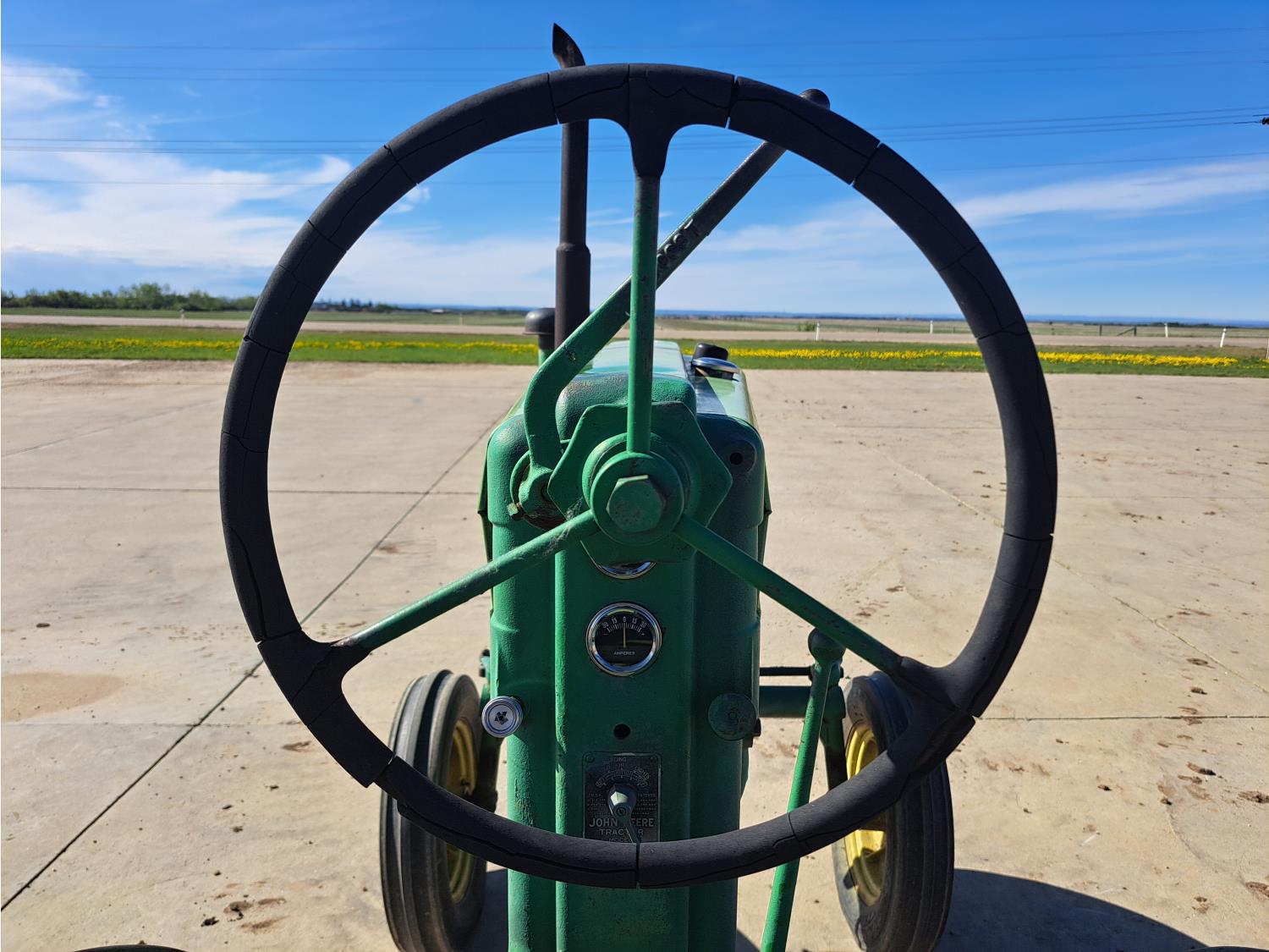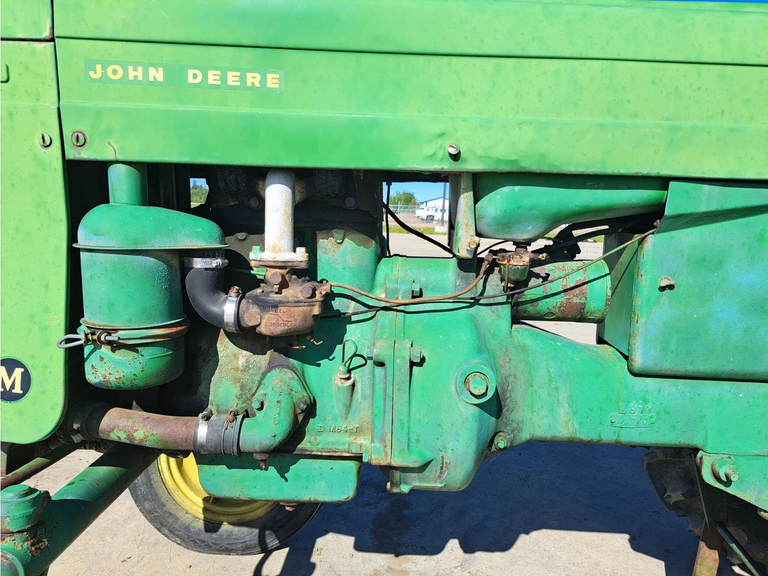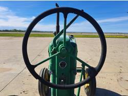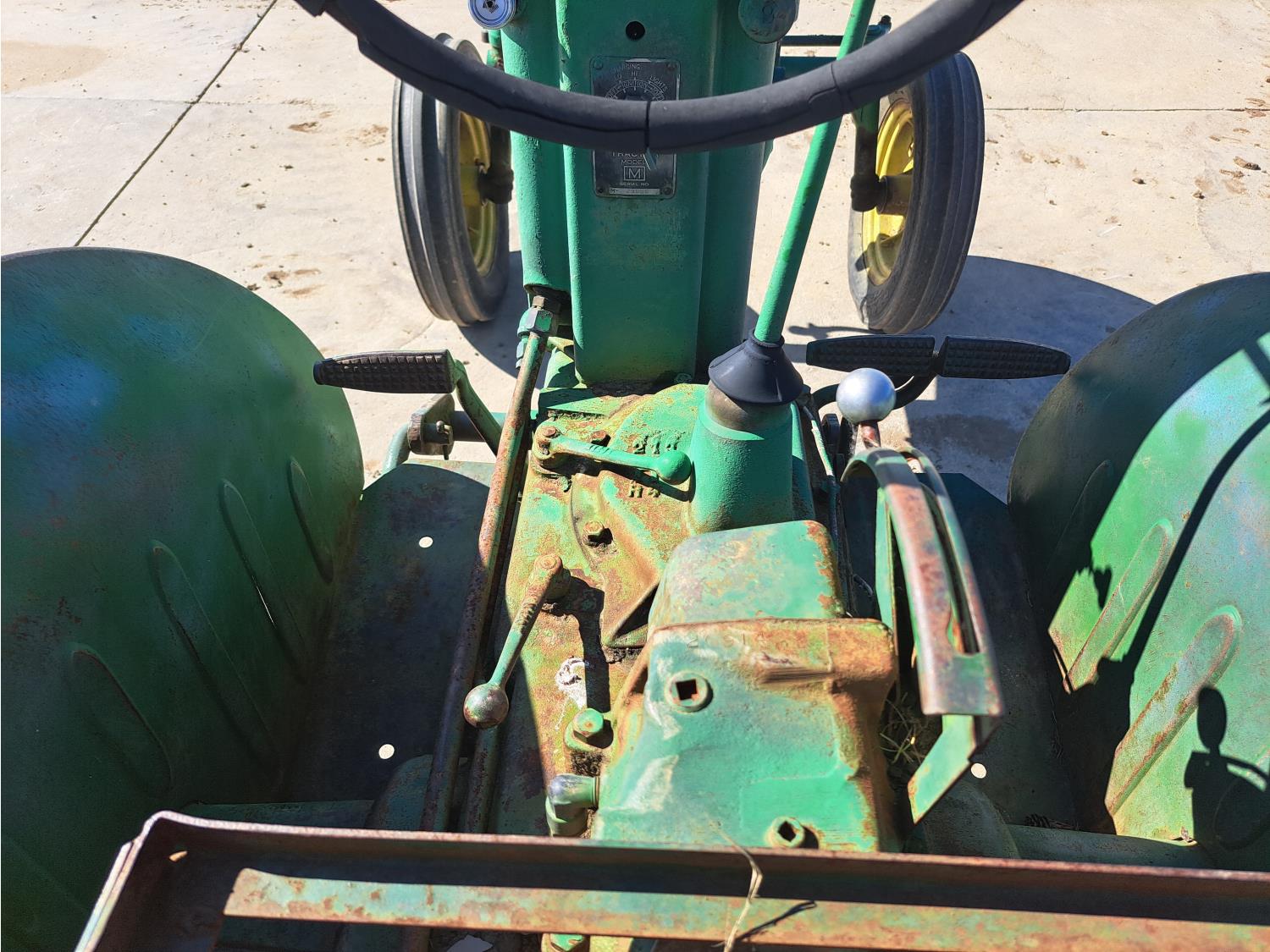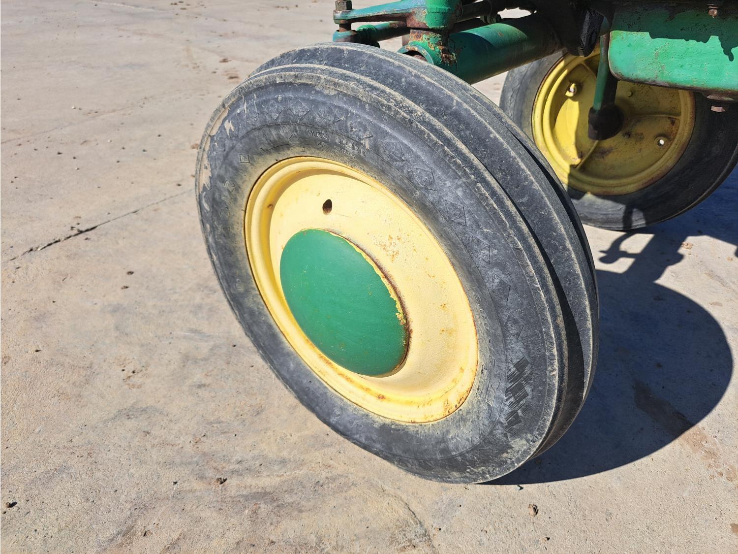 John Deere 1.6 L 2 cylinder 22 HP, gas engine, 4 speed manual transmission, open station platform, 540 PTO, rear wheel weights, 5.00-15 front tires, 11.2/10-24 rear tires