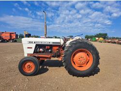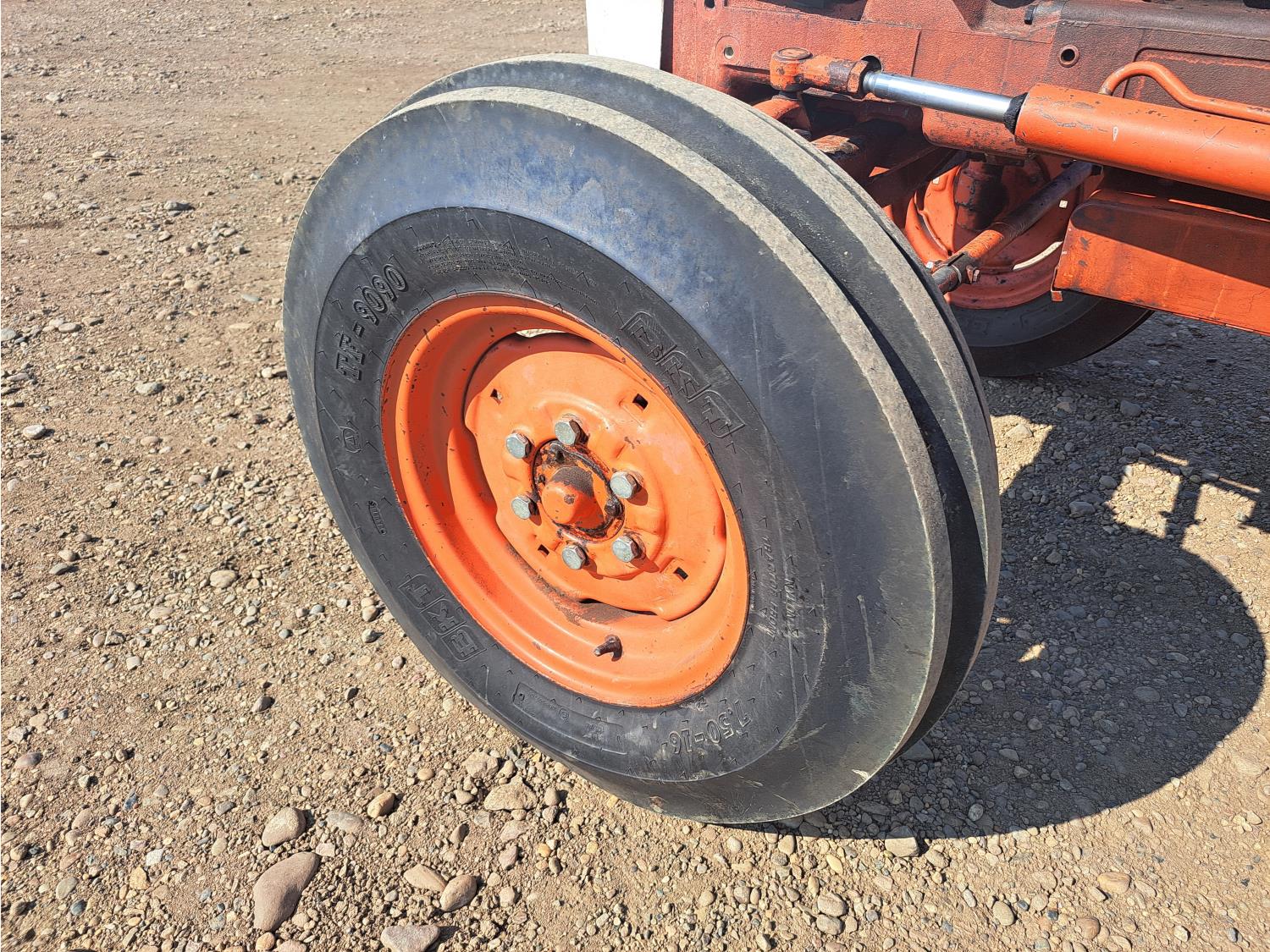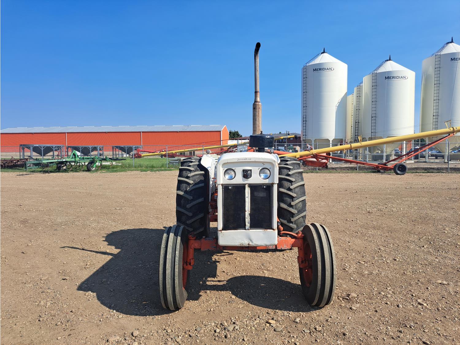 David Brown 3.2 L 4 cylinder 58 HP, diesel engine, 52 PTO HP, 12 speed partial synchro transmission, open station platform, 540E PTO, 3 point hitch, 2 rear hydraulic outlets, 7.50-16 front tires, 16.9-30 rear tires