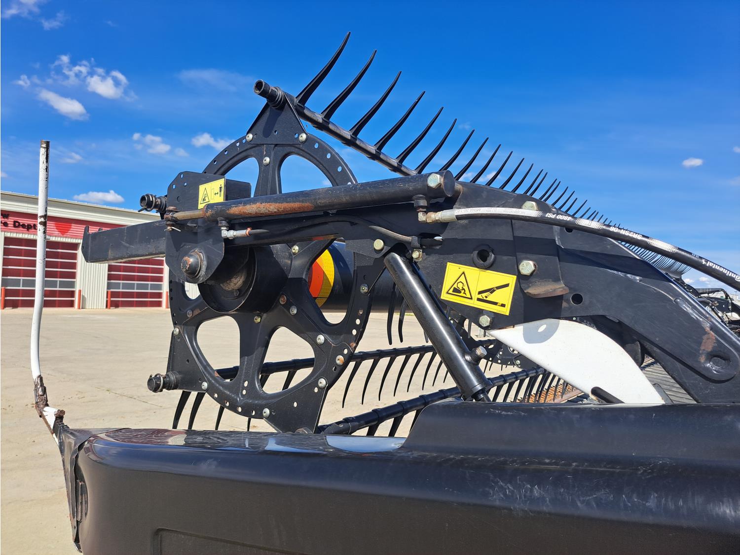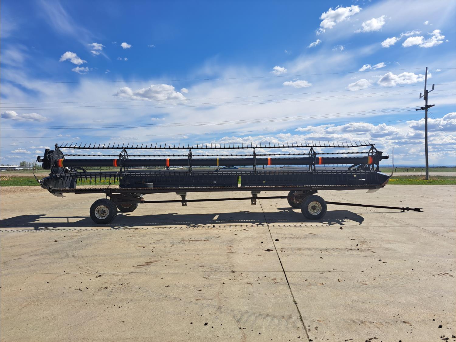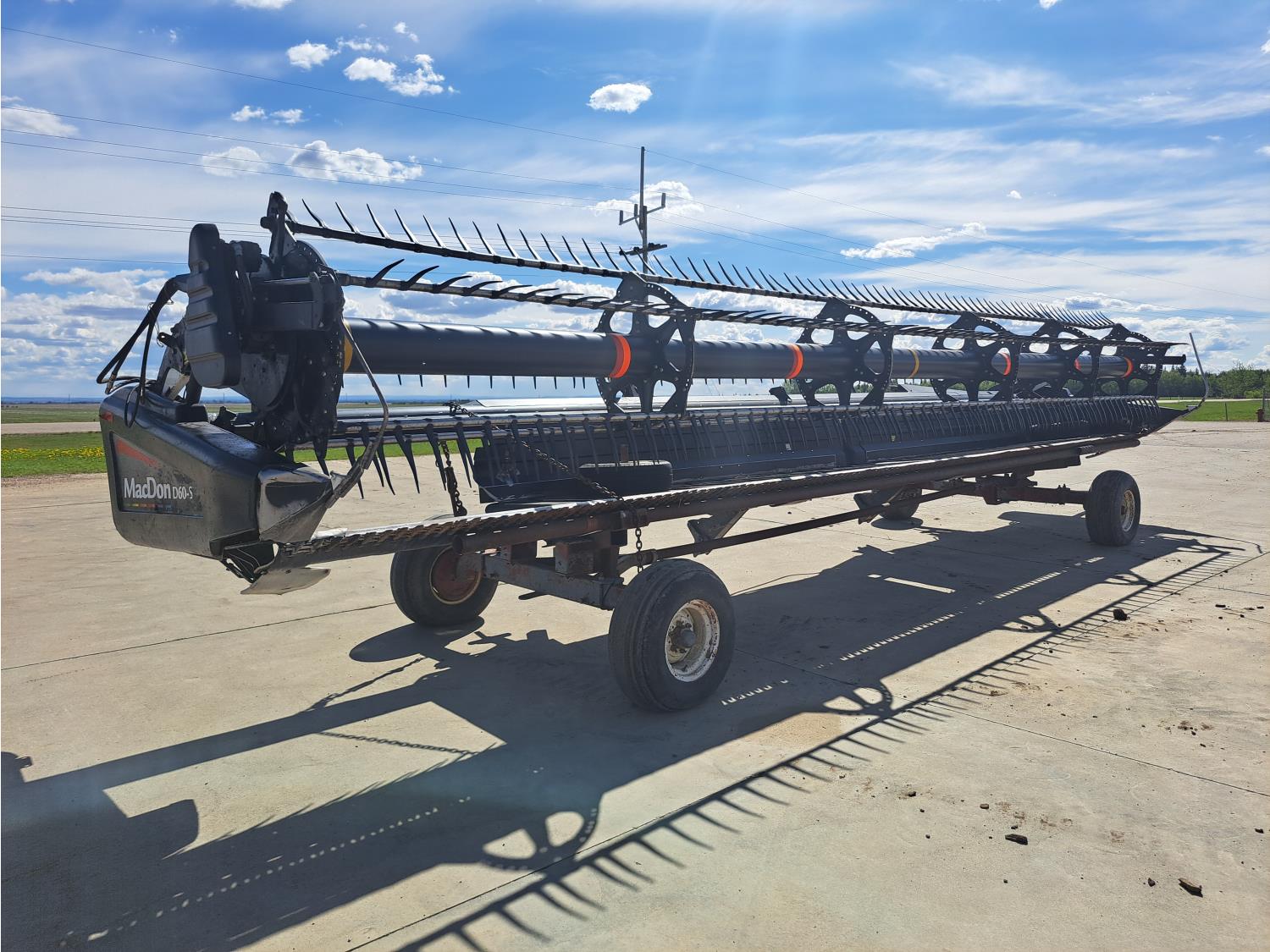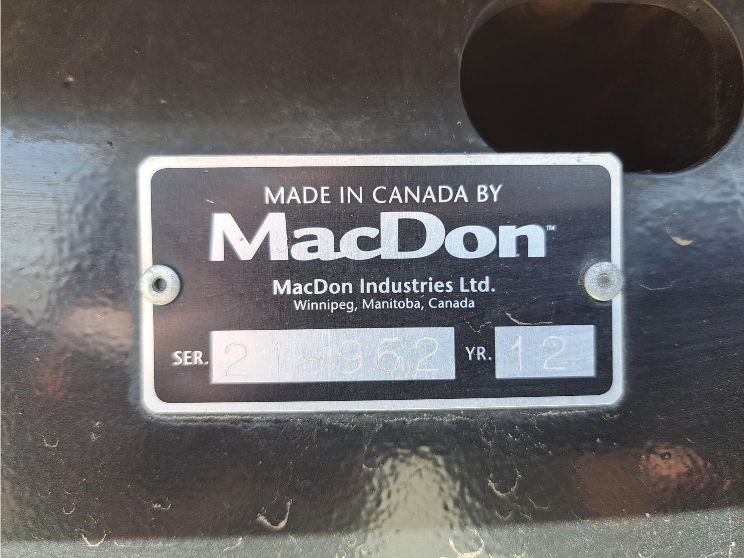 2012 MacDon D60-S double delivery variable speed reel, Pathfinder header transport, 12.5L-15SL transport tire size, Cummins 4.5 L diesel engine, A/C, radio, air ride seat, buddy seat, reversible operator station, 600/65R28 front tires, 16.5L-16.1 rear tires