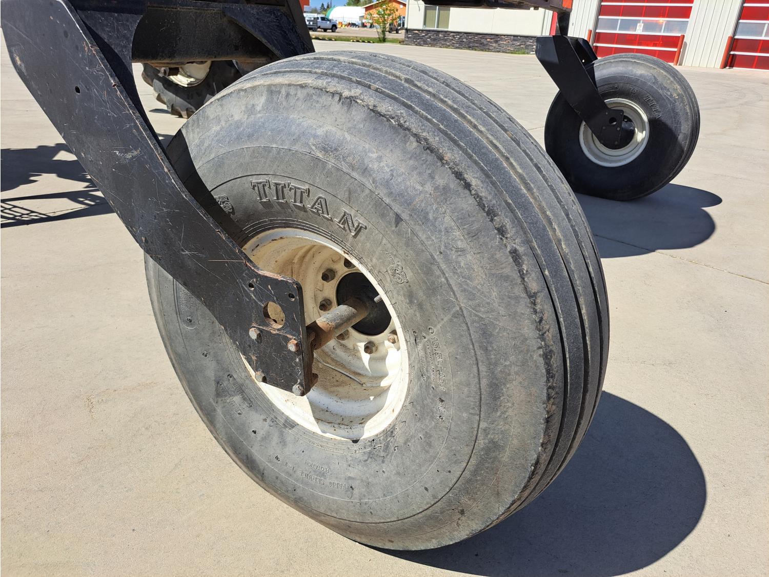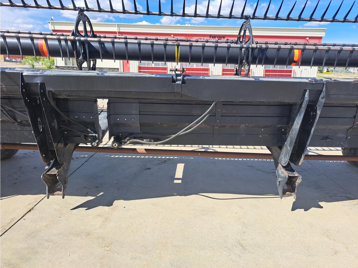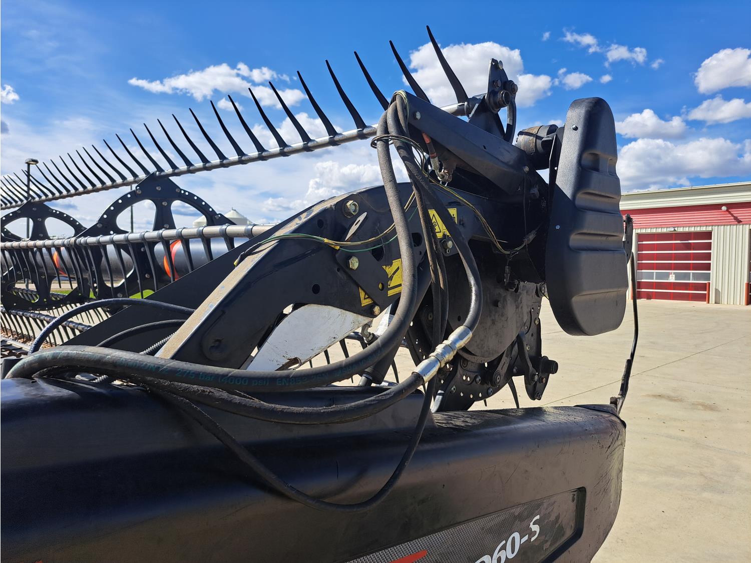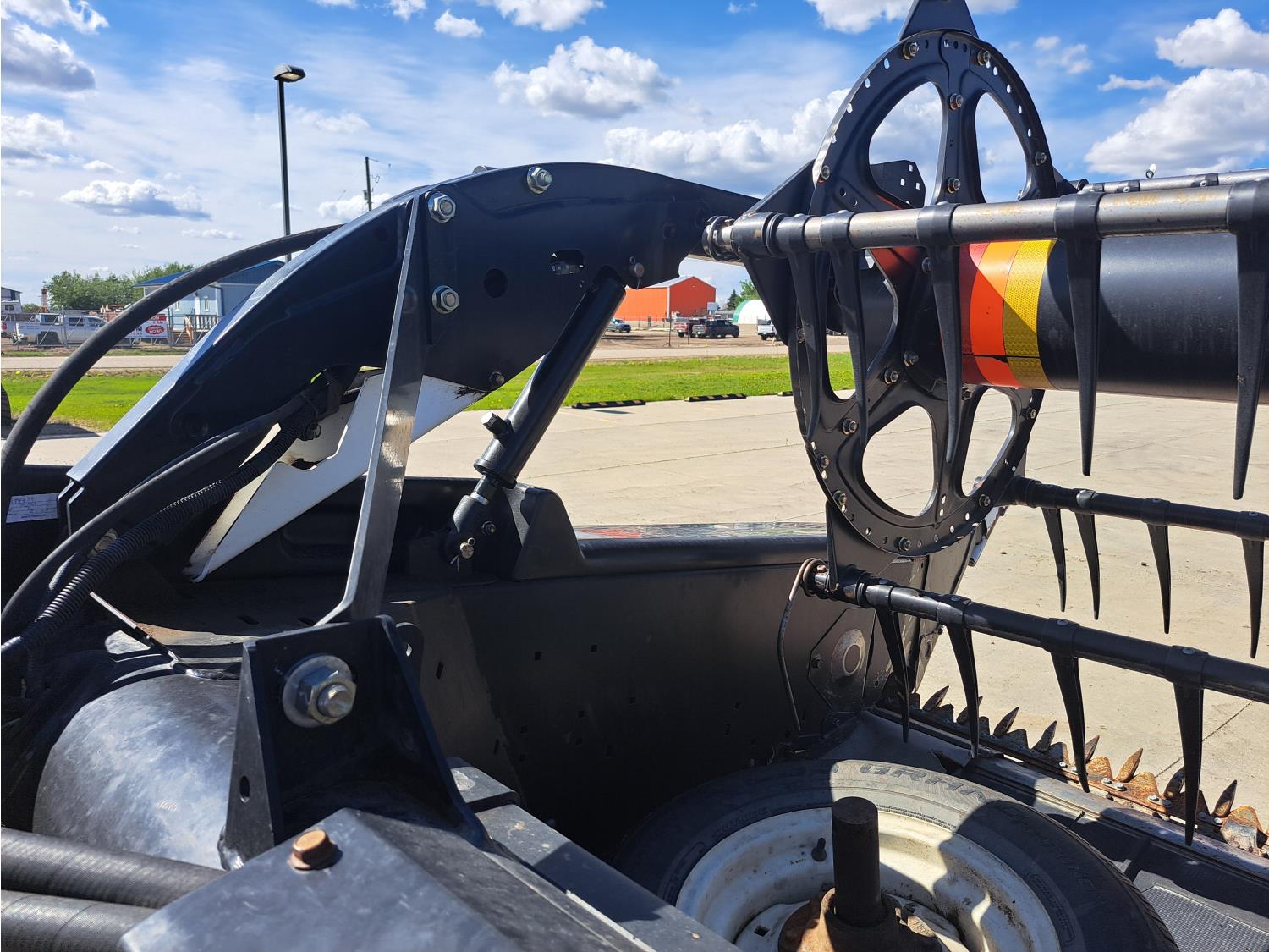 2012 MacDon D60-S double delivery variable speed reel, Pathfinder header transport, 12.5L-15SL transport tire size, Cummins 4.5 L diesel engine, A/C, radio, air ride seat, buddy seat, reversible operator station, 600/65R28 front tires, 16.5L-16.1 rear tires