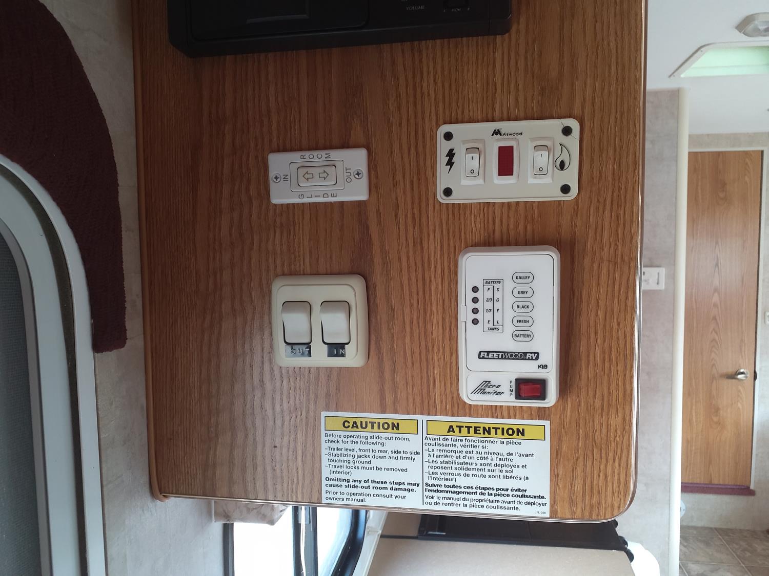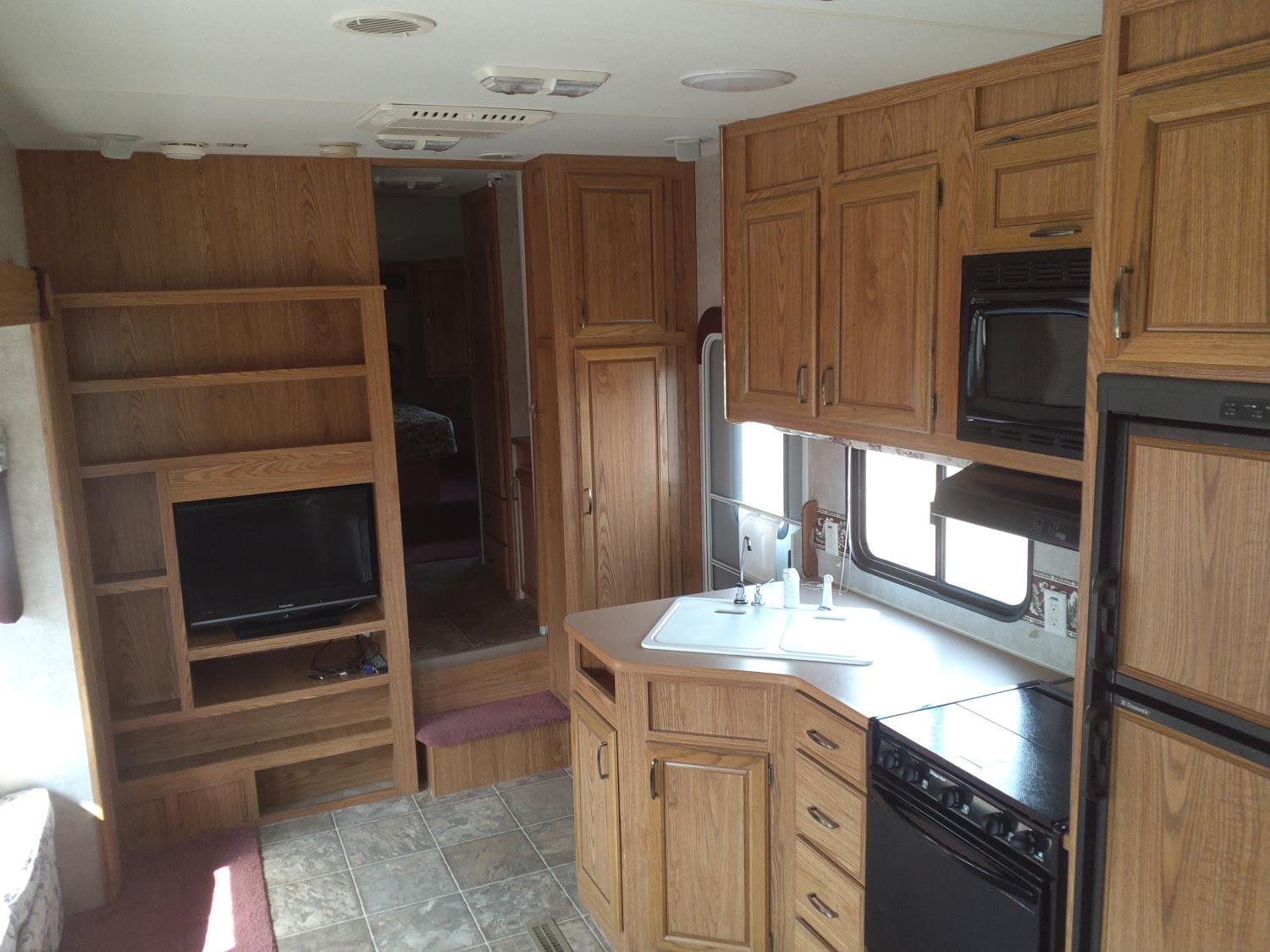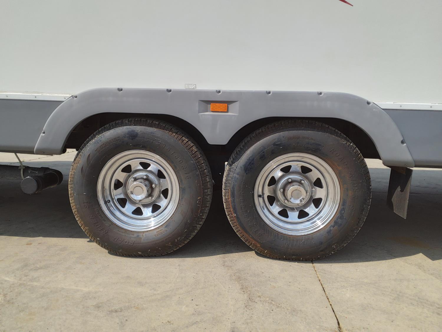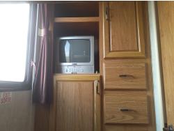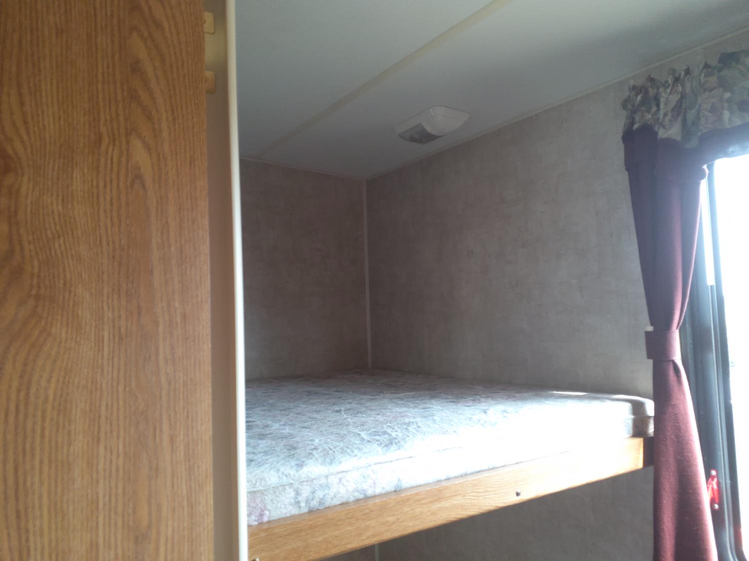 stove, fridge, microwave, full bath, master bedroom, bunk beds, A/C, outdoor shower, 1 slide, power awning, power levelling jacks, spring suspension, 235/80R16 tires