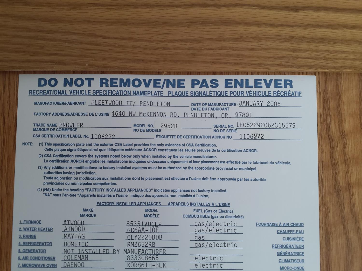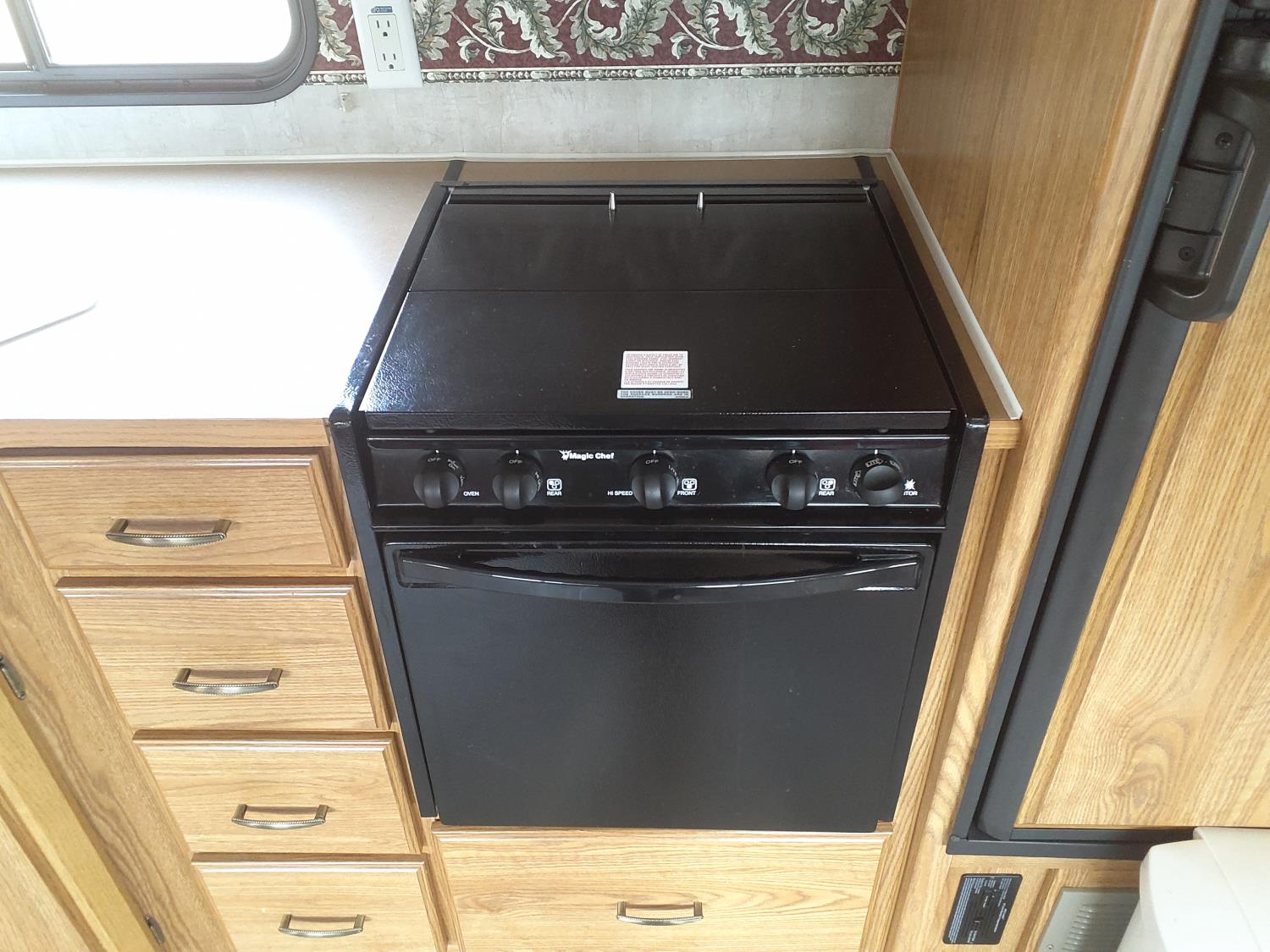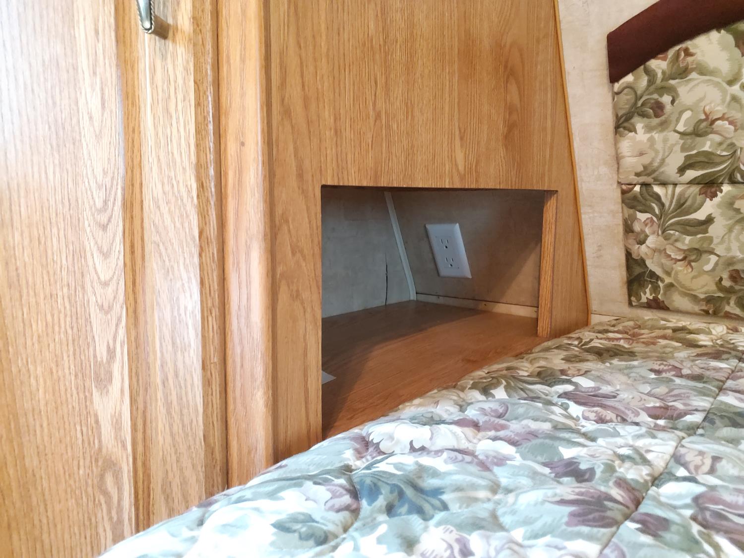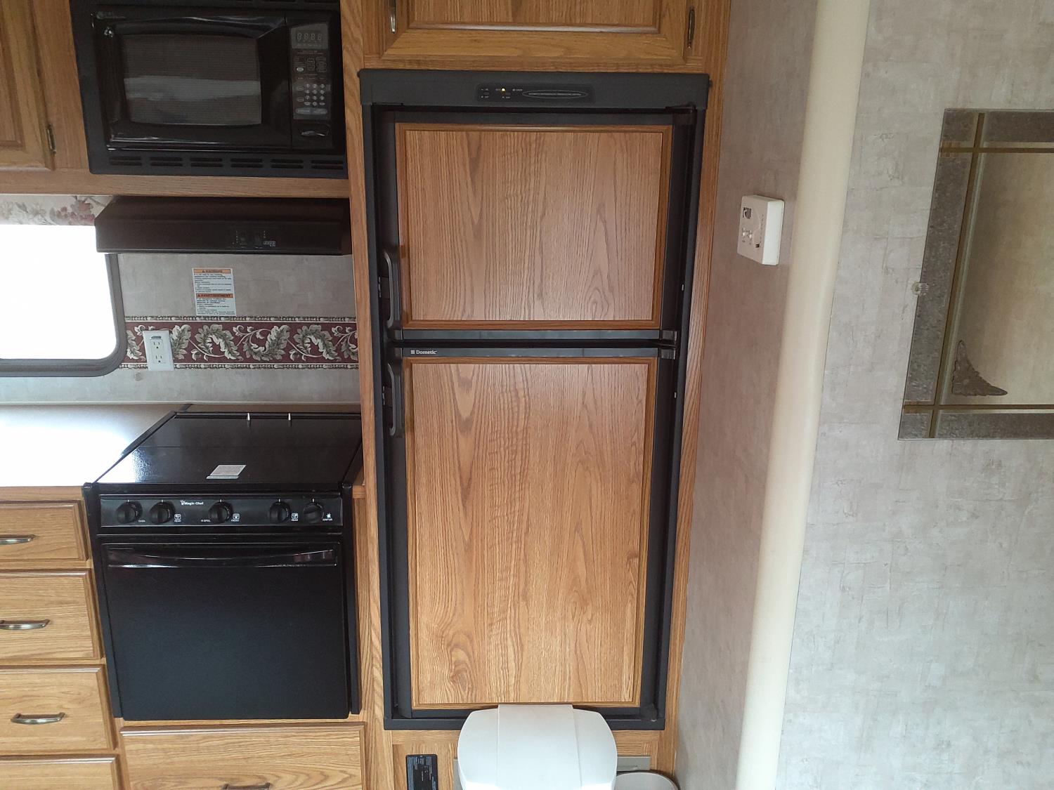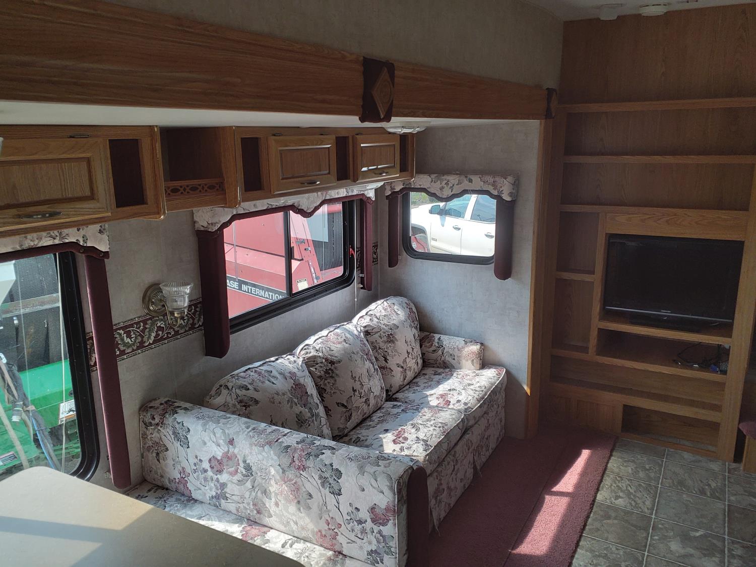 stove, fridge, microwave, full bath, master bedroom, bunk beds, A/C, outdoor shower, 1 slide, power awning, power levelling jacks, spring suspension, 235/80R16 tires