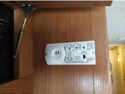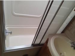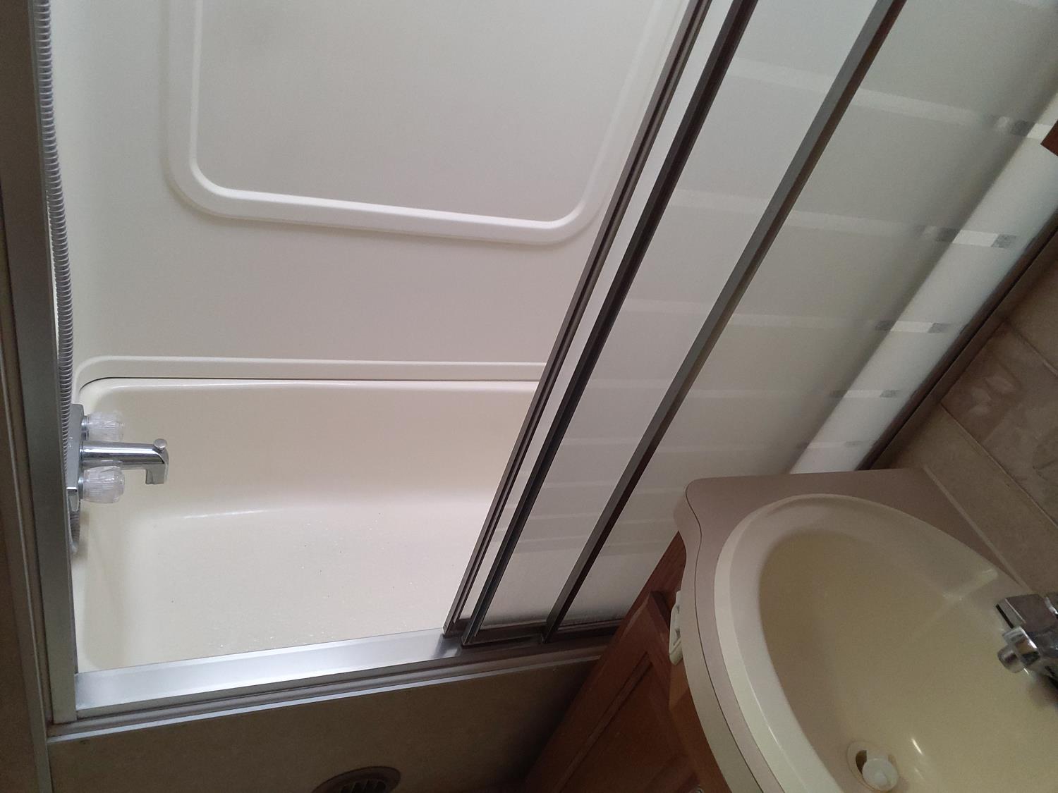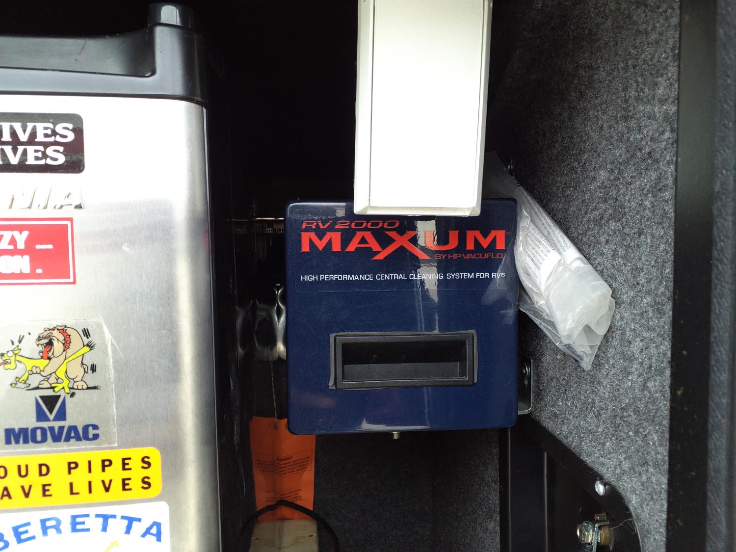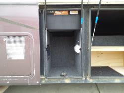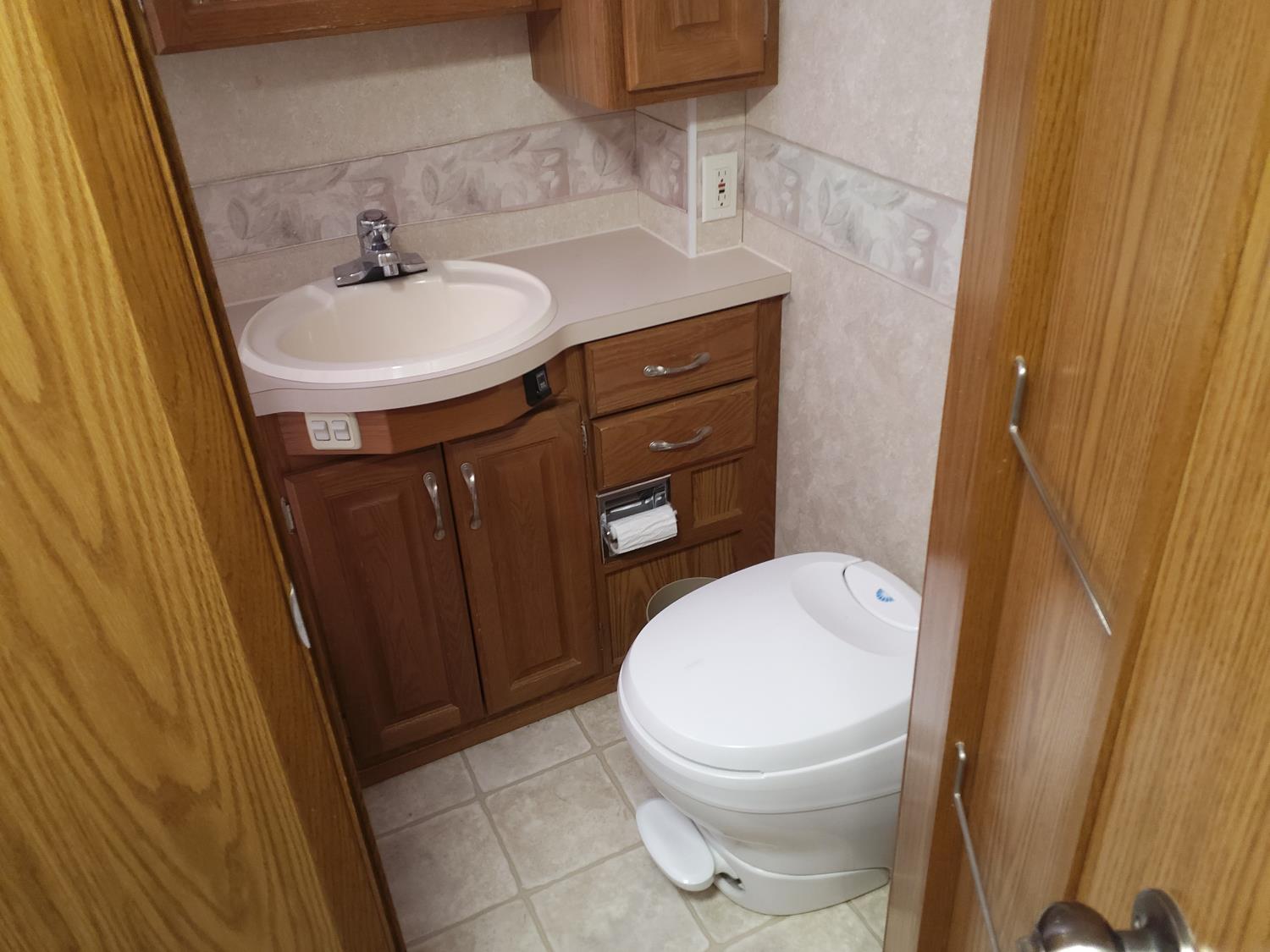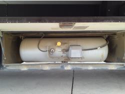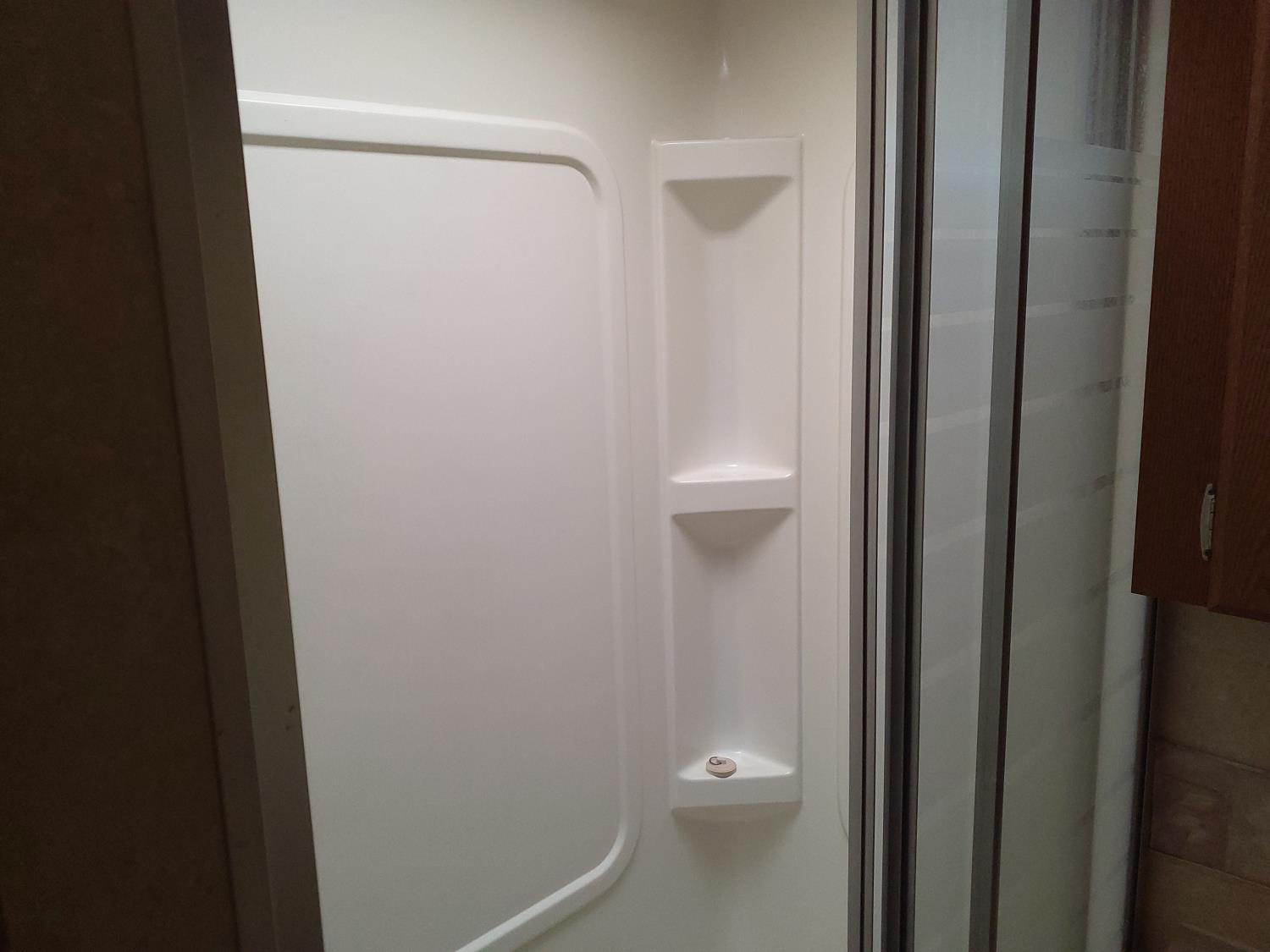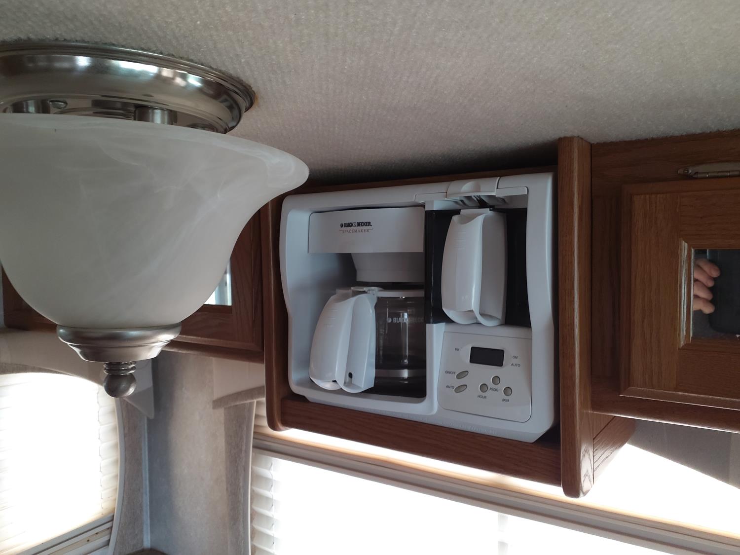 2 slides, 3 awnings, bathroom, hydraulic leveling/stabilizers, kitchen/kitchenette, passenger seats, roof A/C, CD Player, GVWR 22000 lb. fresh water capacity 74 gallon, hot water capacity 10 gallon, Queen bed, central vac with attachments, engine 8.1 L Vortec, transmission automatic drive, rear wheel drive, color white with maroon, Onan gas generator